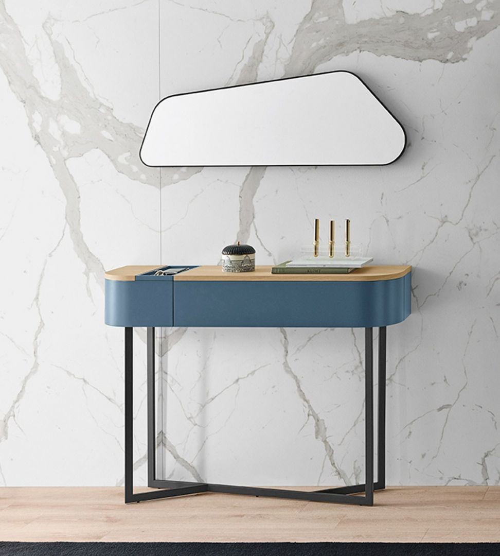 تصميمه النحيف يجعله مناسبًا للأماكن الضيقة، مع الحفاظ على حضور فني وجمالي يجعله لافتًا دون أن يطغى على باقي الأثاث.
