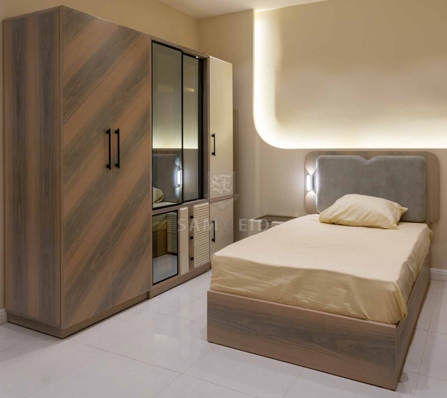 صمّم لأطفالك غرفة نوم تجمع بين الراحة والأناقة، مع توازن رائع بين لون الخشب البني الدافئ والبيج الهادئ ليخلق جو مريح وراقي.