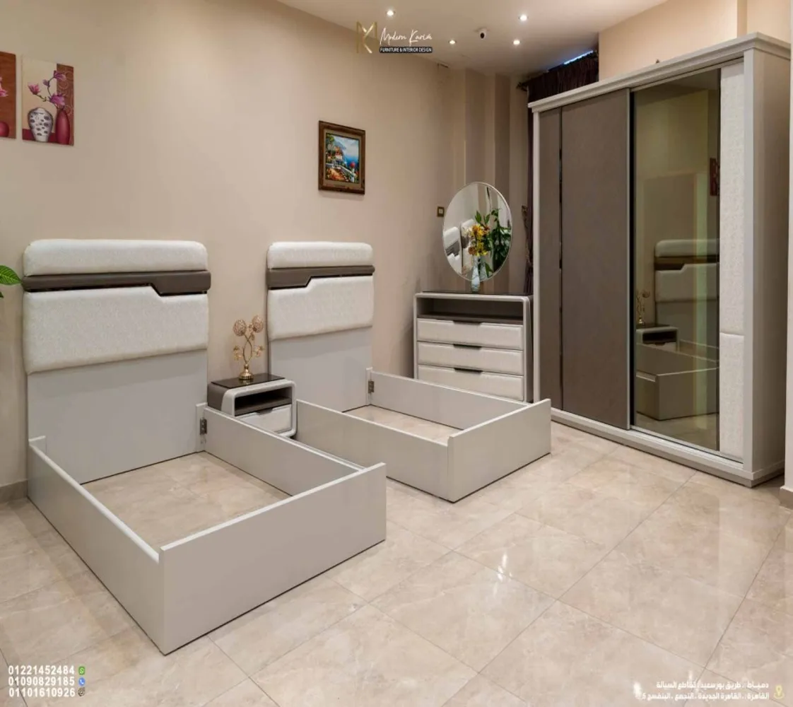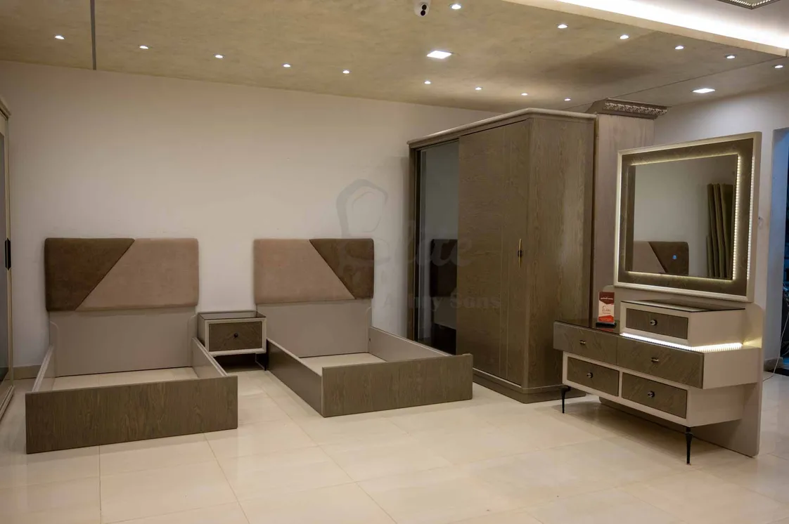 غرفة نوم متكاملة مصممة خصيصًا لتناسب احتياجات الشباب والأطفال، بتفاصيل مودرن أنيقة وخامات طبيعية عالية الجودة.