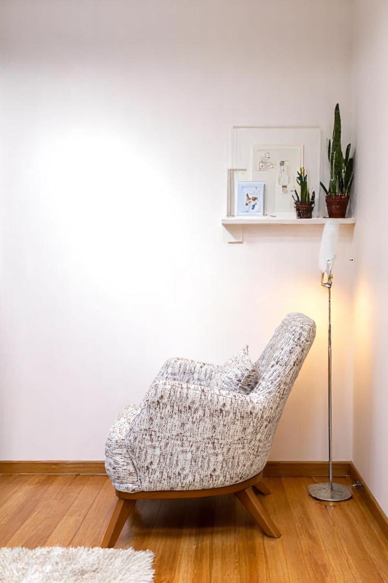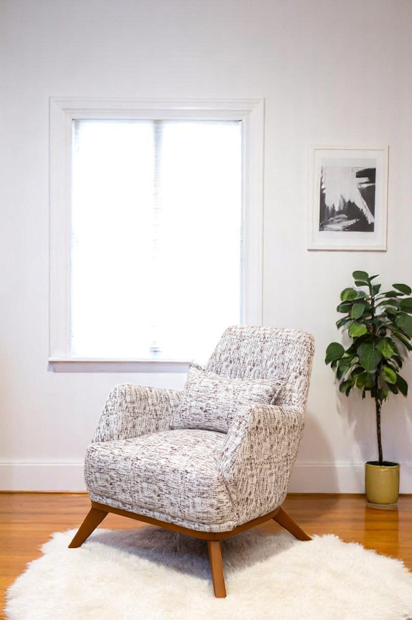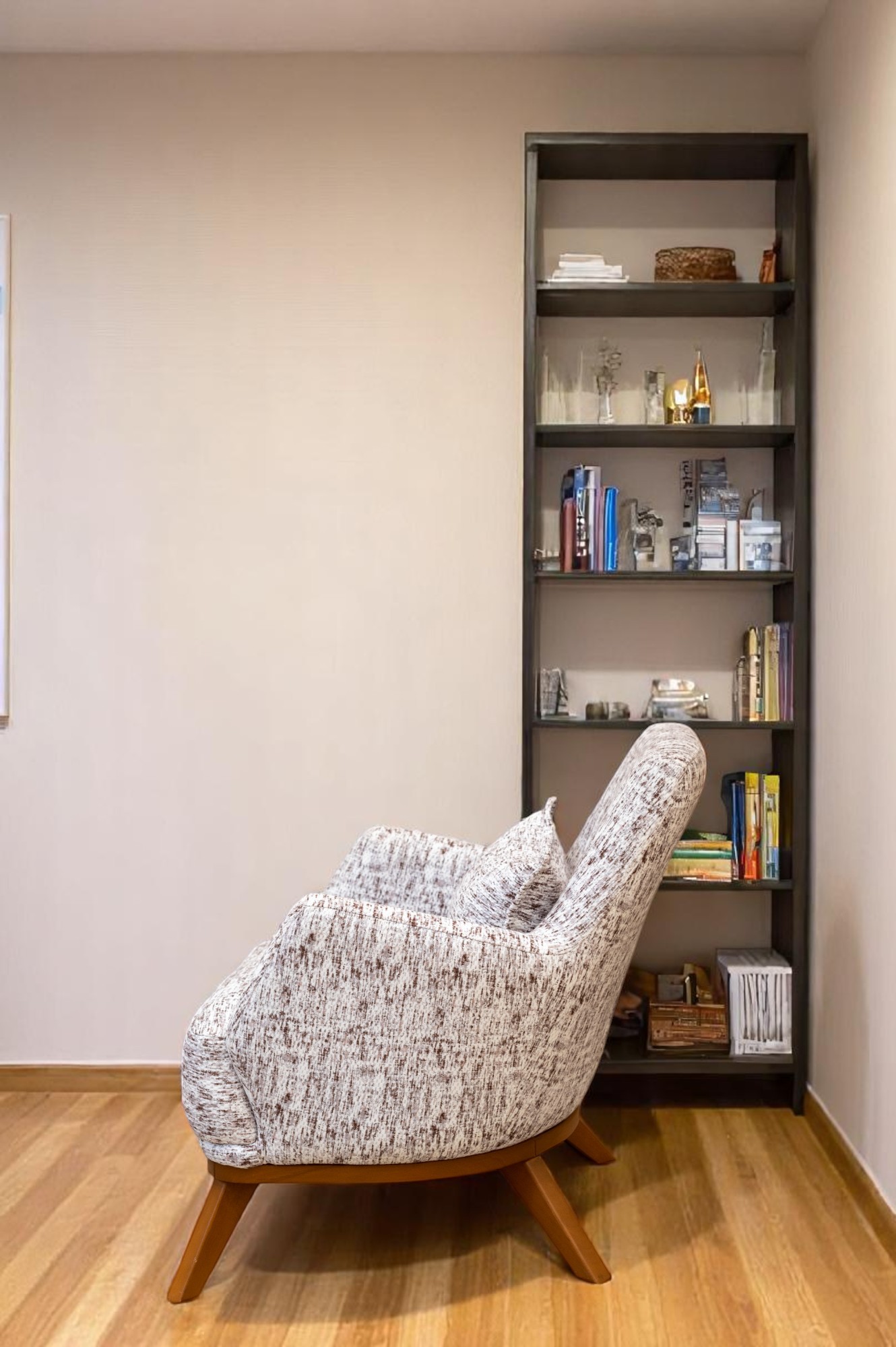 أضف لمسة من الرقي والراحة إلى مساحتك مع هذه الكنبة المفردة المصممة بأسلوب ناعم ومنحني يعكس الذوق العصري. تأتي بتنجيد قماشي بنقشة ناعمة باللون البيج يعزز الإحساس بالدفء والراحة، مع قاعدة خشبية صلبة تضفي ثباتًا وأناقة طبيعية. مثالية لغرف الجلوس، الزوايا الدافئة، أو مداخل المنزل.