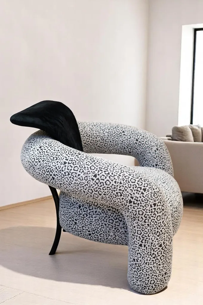 أطلق العنان لستايلك الجريء مع هذه الكنبة المفردة المزينة بنقشة فهد جذابة باللونين الأبيض والأسود. تصميمها المنحني والوسادة السوداء المرفقة يخلقان توازنًا بين الجمال العصري والراحة. مثالية لإضفاء لمسة فنية فريدة على أي غرفة معيشة أو زاوية استرخاء.