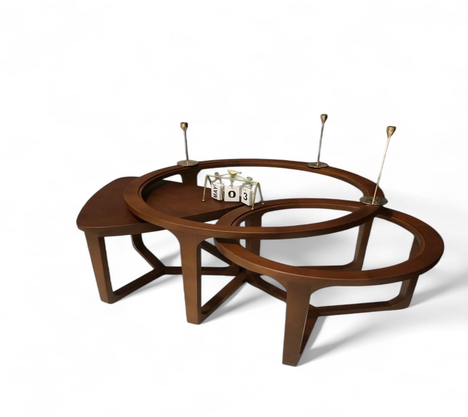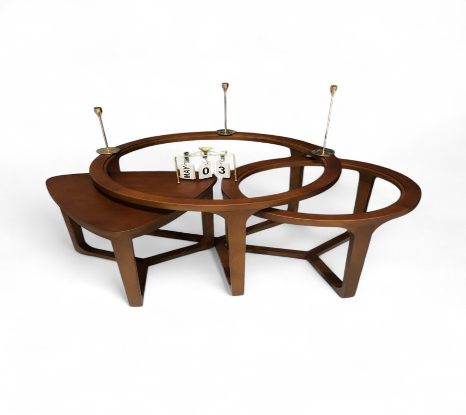 ترابيزة قهوة مودرن مكونة من 3 قطع — تصميم خشبي بني أنيق