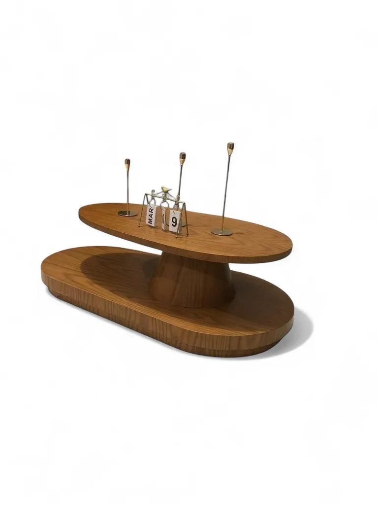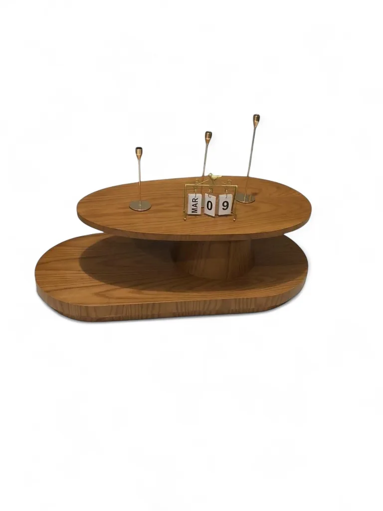 ترابيزة قهوة أنيقة بتصميم عصري يجمع بين البساطة والعملية، مثالية لإضفاء لمسة راقية على غرفة المعيشة أو منطقة الجلوس. مصنوعة من الخشب عالي الجودة، وتتميز بسطحين بيضاويين متدرجين في الحجم، متصلين بدعامة أسطوانية مركزية تمنحها مظهرًا متوازنًا وحديثًا.