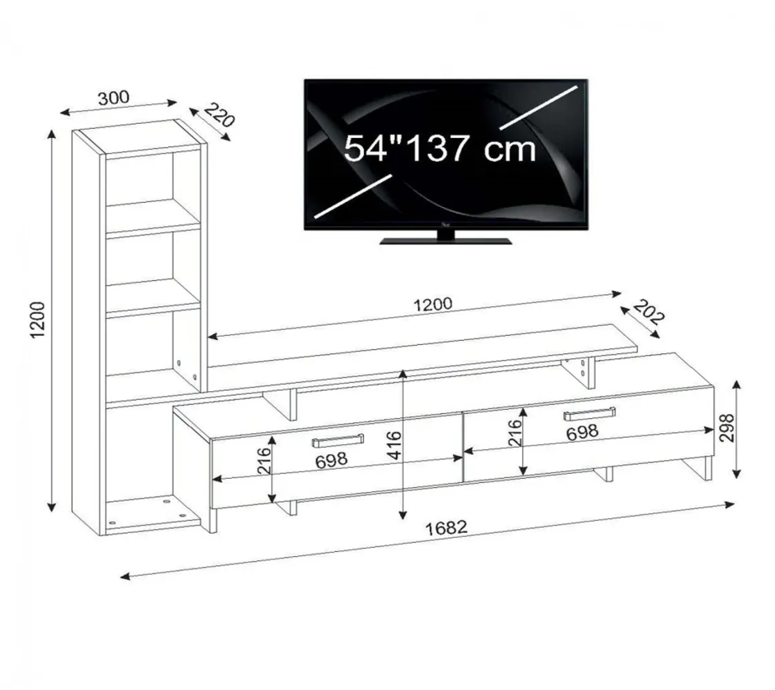 الحجم: العرض: 169 سم ، الارتفاع: 120 سم ، العمق: 22 سم. المادة: خشب MDF ، سمك 18 مم.