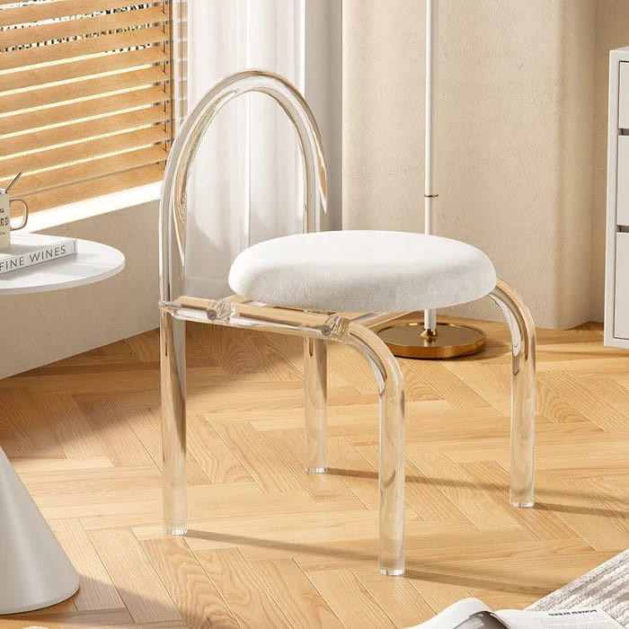 كرسي طعام أنيق من الأكريليك والقماش – تصميم عصري للمساحات الصغيرة