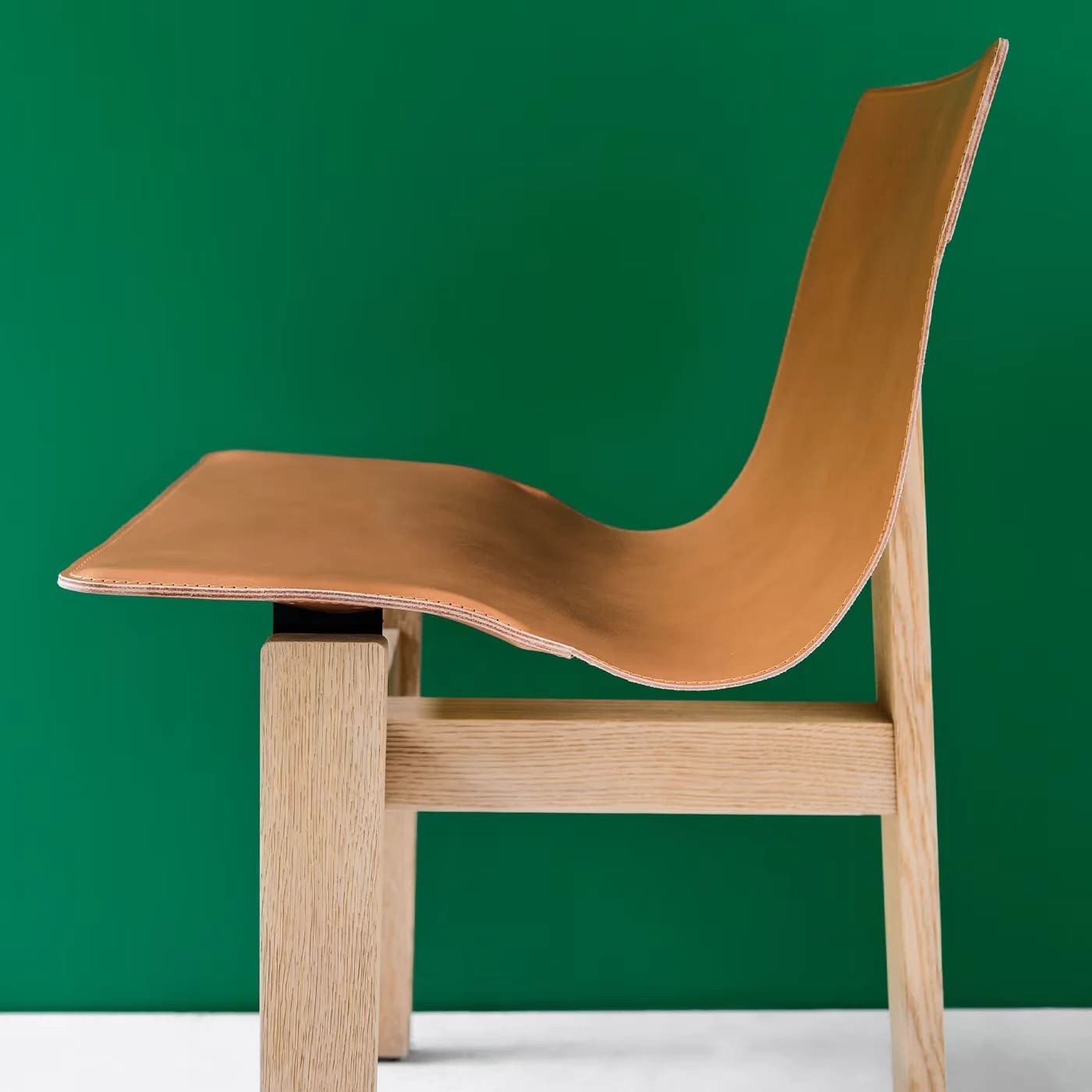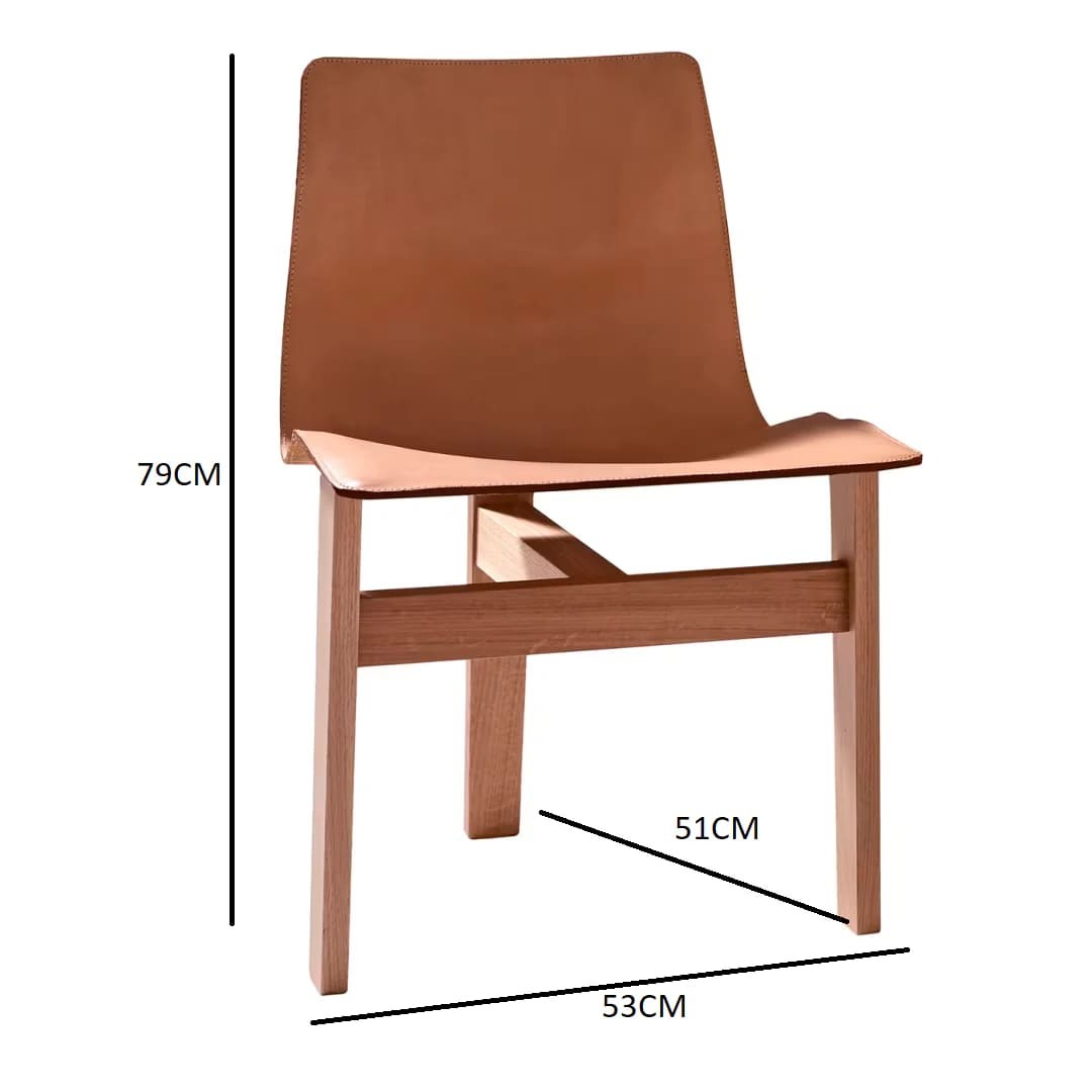 كرسي طعام من الخشب الطبيعي مع مقعد جلد بني – تصميم أنيق ولمسة دافئة