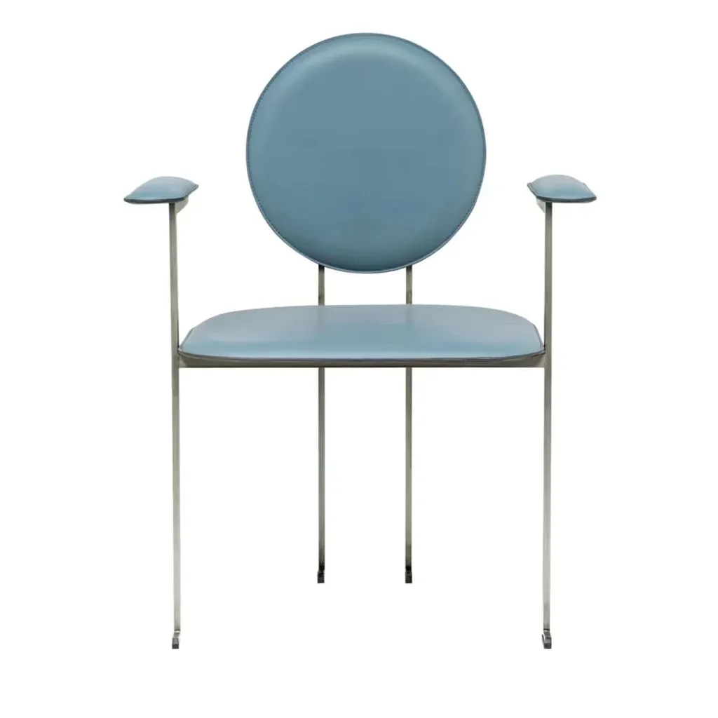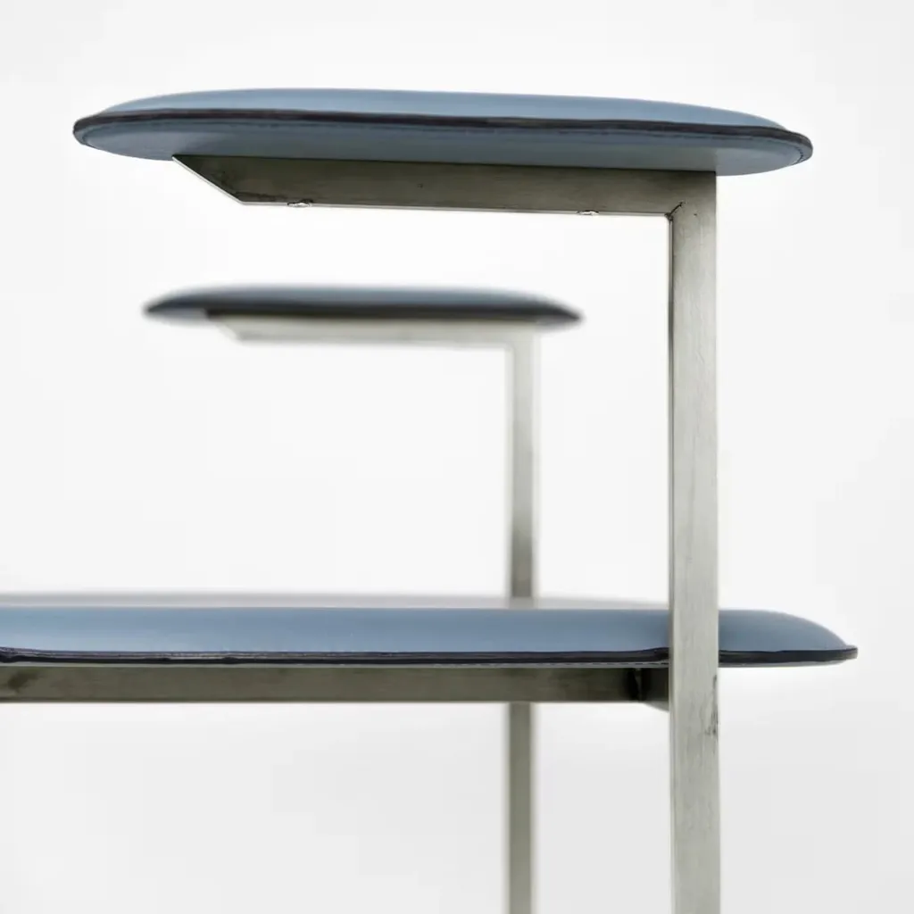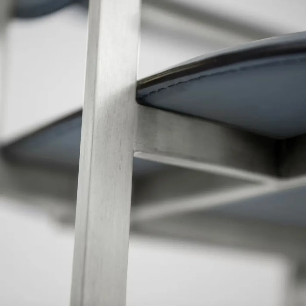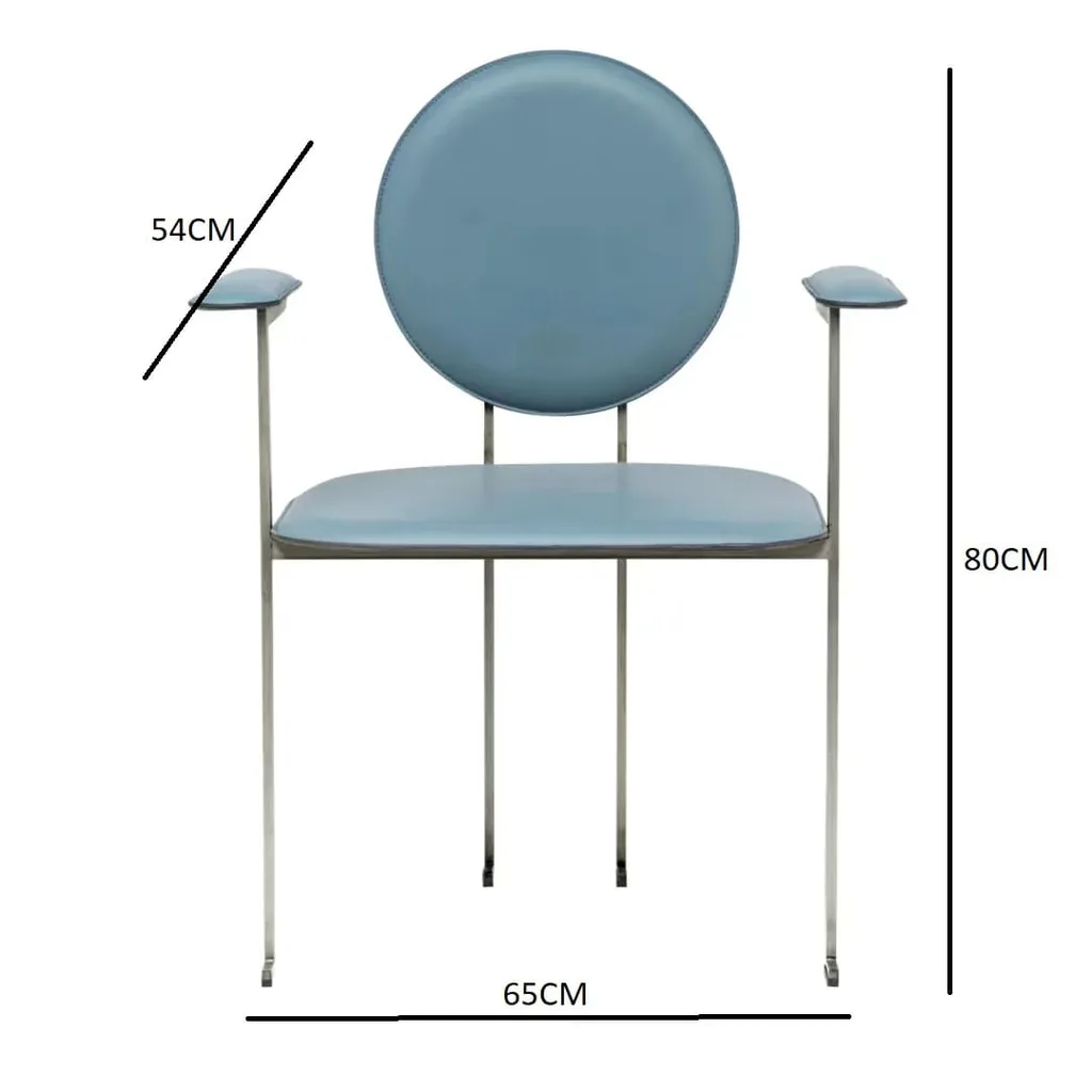 كرسي عصري من الجلد والمعدن – تصميم فاخر باللون الأزرق والفضي