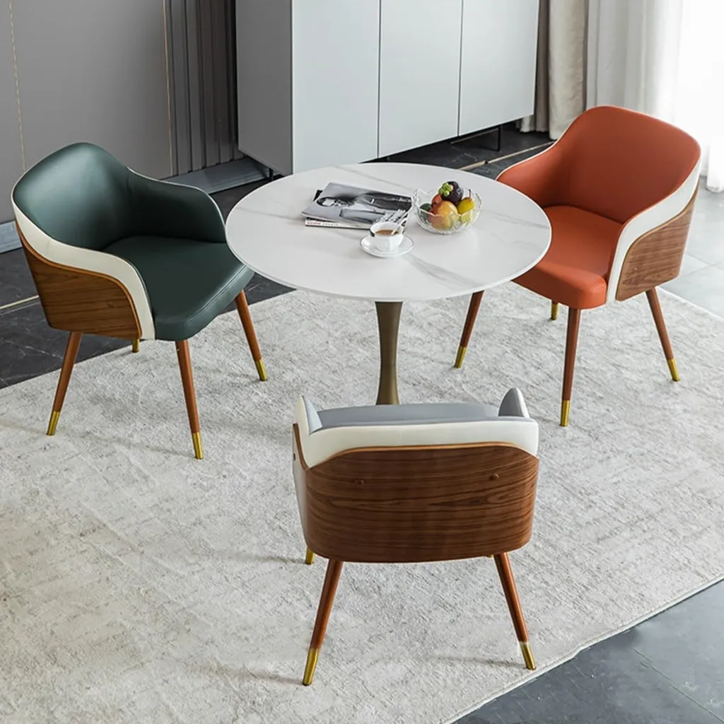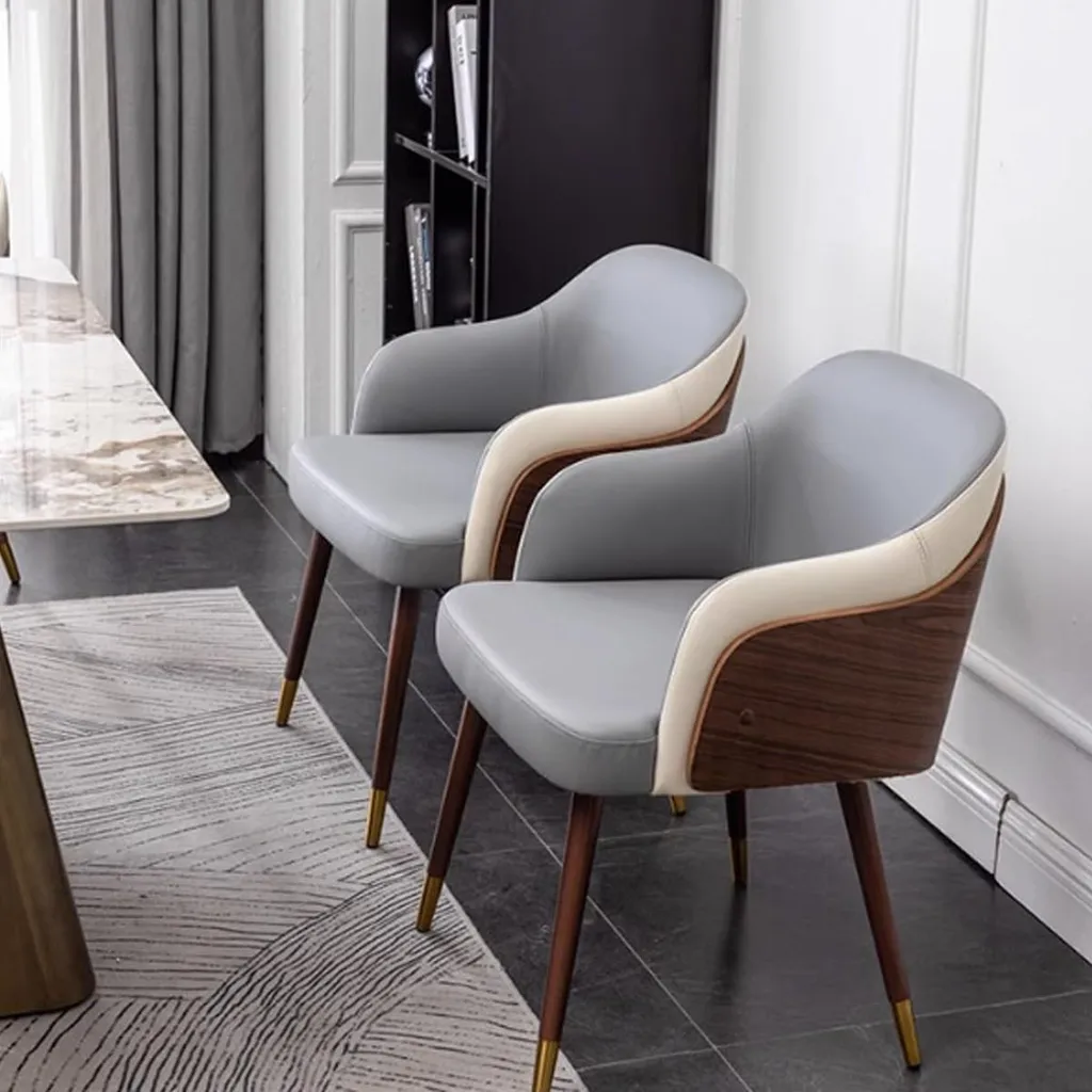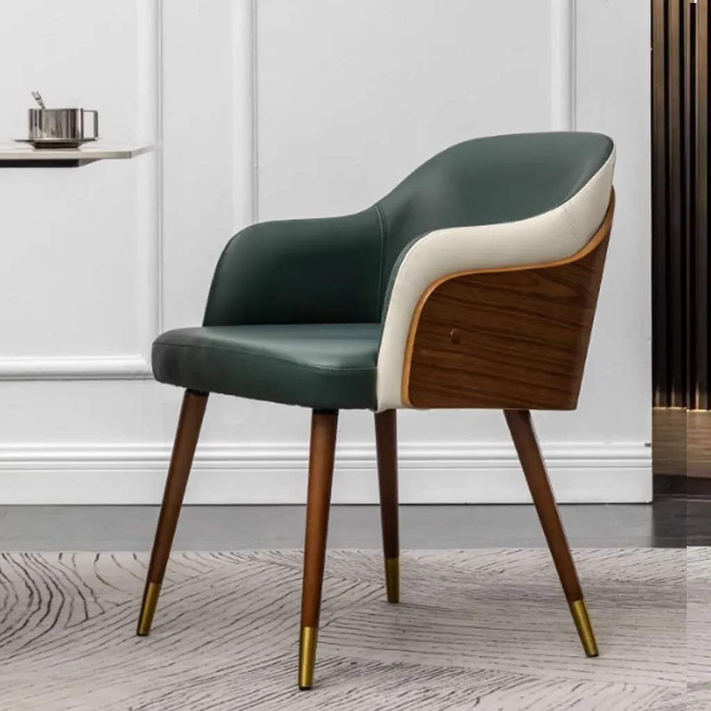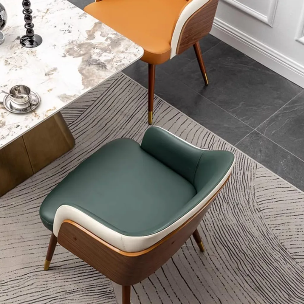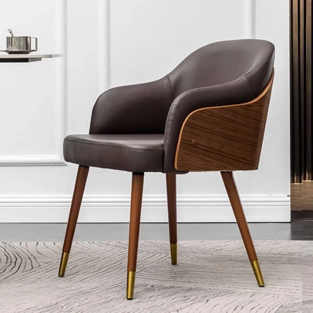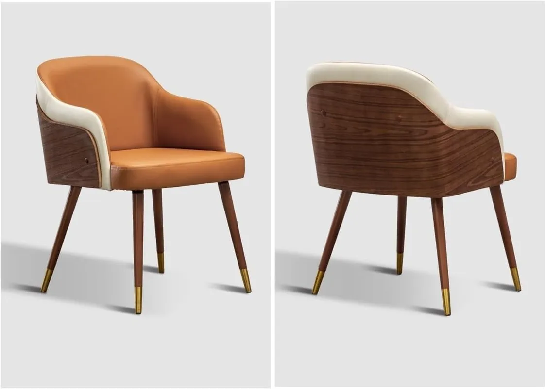 كرسي طعام فاخر بلمسة عصرية – جلد عالي الجودة وهيكل خشبي أنيق
