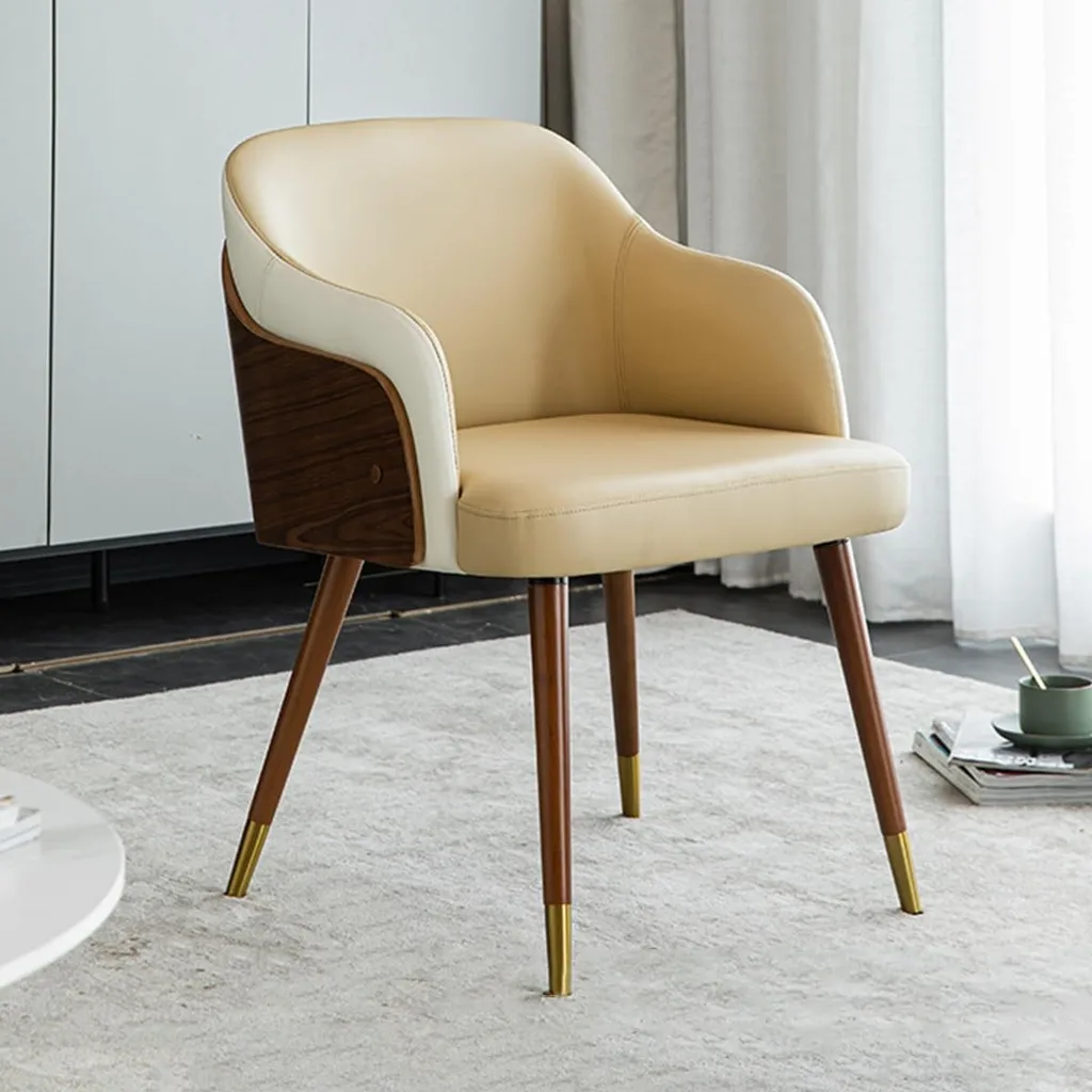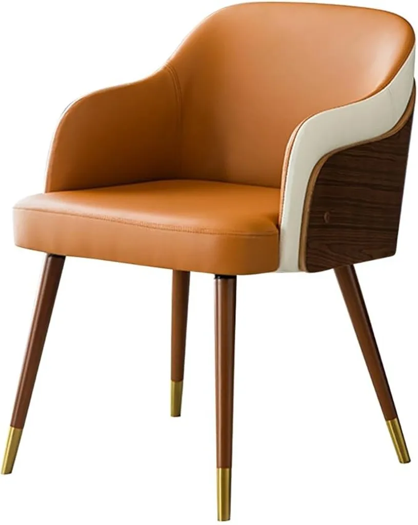 اجعل مساحتك تنبض بالأناقة مع هذا الكرسي العصري المصنوع من خشب طبيعي متين، ومُغطى بجلد عالي الجودة يمنحك إحساسًا فاخرًا وراحة فريدة أثناء الجلوس. تصميمه المميز يشمل ظهرًا منحنياً ومقعدًا واسعًا، مع أرجل خشبية تنتهي بتفاصيل معدنية تضيف لمسة فخامة.