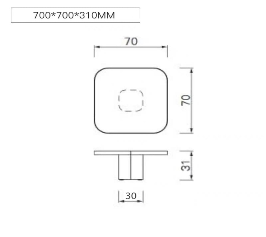 الطاولة الصغيرة: 70 سم (عرض) × 70 سم (عمق) × 31 سم (ارتفاع)