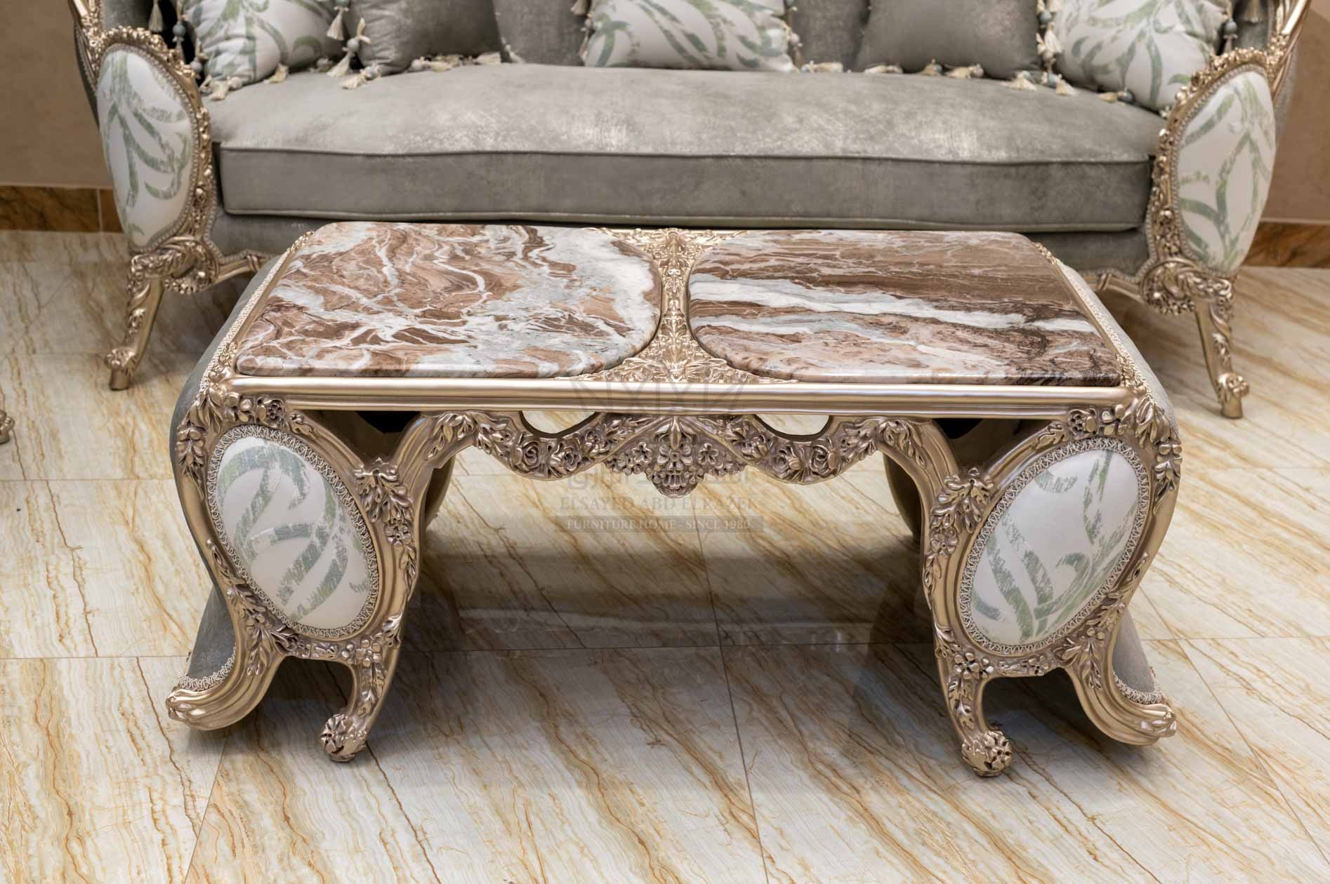 ترابيزة مركزية بسطح من الرخام الطبيعي تضيف لمسة فاخرة للتجميعات