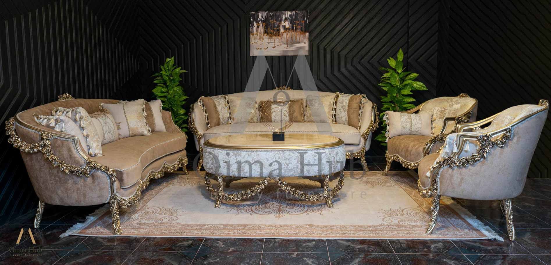 أضف لمسة ملكية لمنزلك مع صالون نيو كلاسيك فاخر بتصميم متوازن يجمع بين الكلاسيكية الراقية واللمسات العصرية الهادئة. كل قطعة مصممة بدقة لتكون عنوانًا للفخامة والراحة في آنٍ واحد.