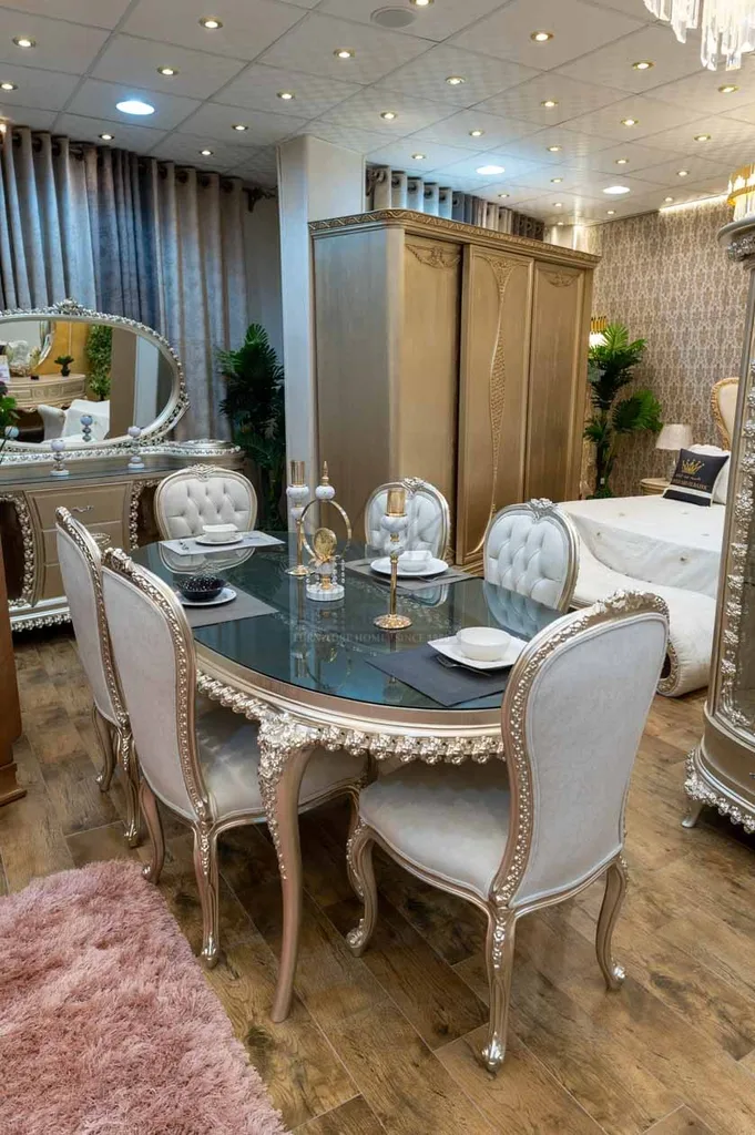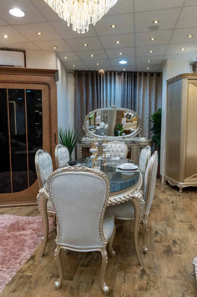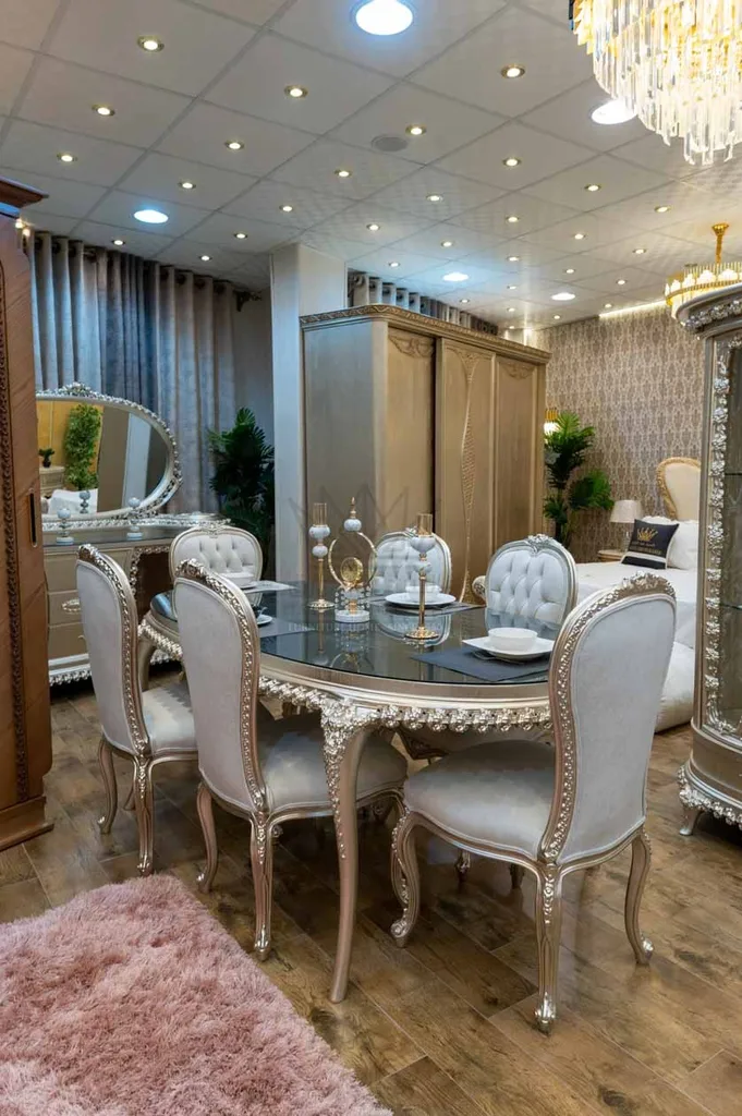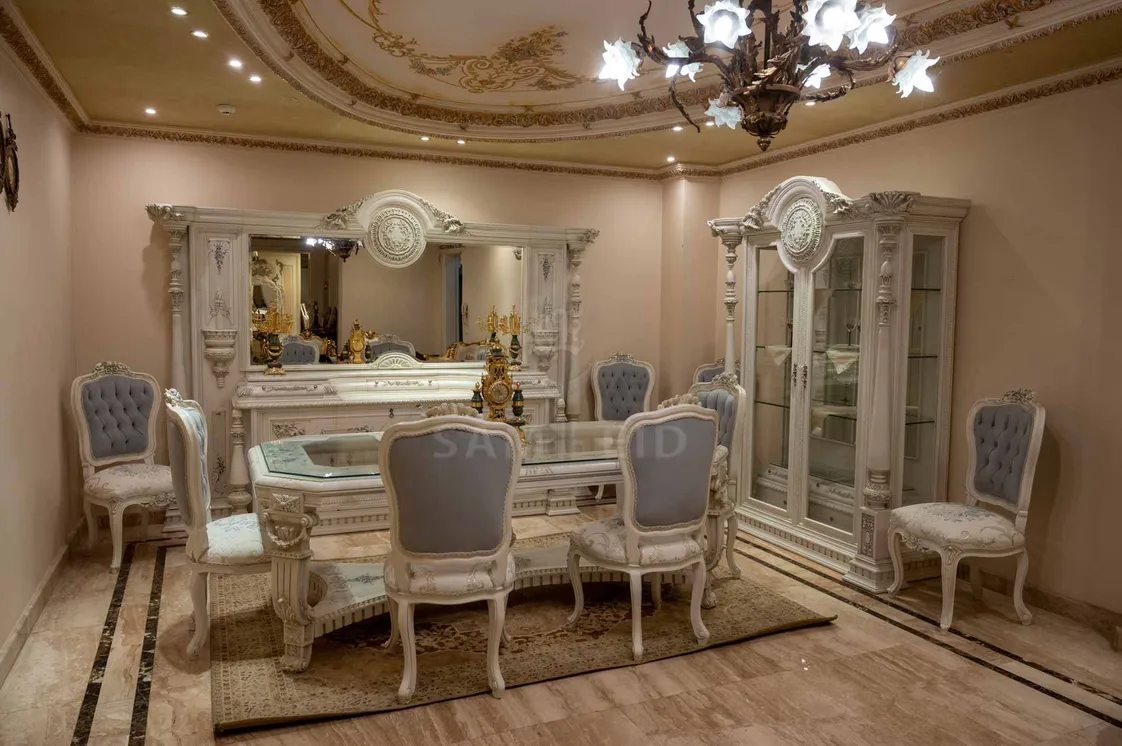 غرفة طعام كلاسيك – حفر يدوي وفخامة لا تُنسى