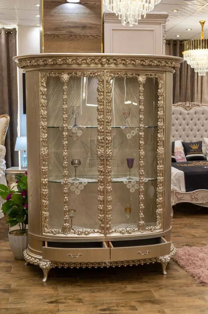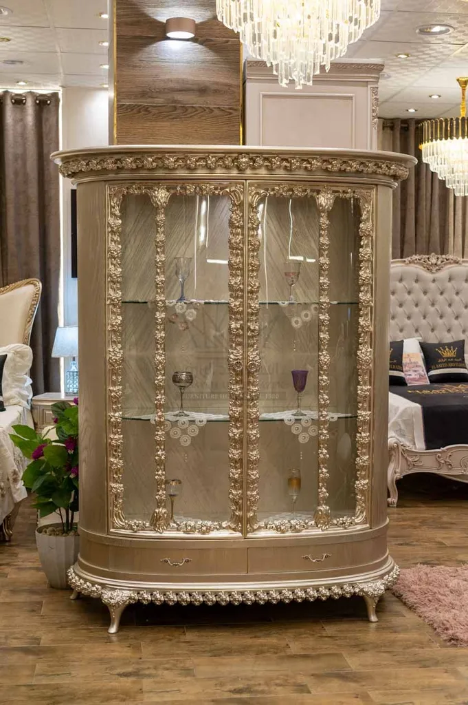 نيش كلاسيكي فاخر لعرض الكريستالات والأطقم بأسلوب أنيق