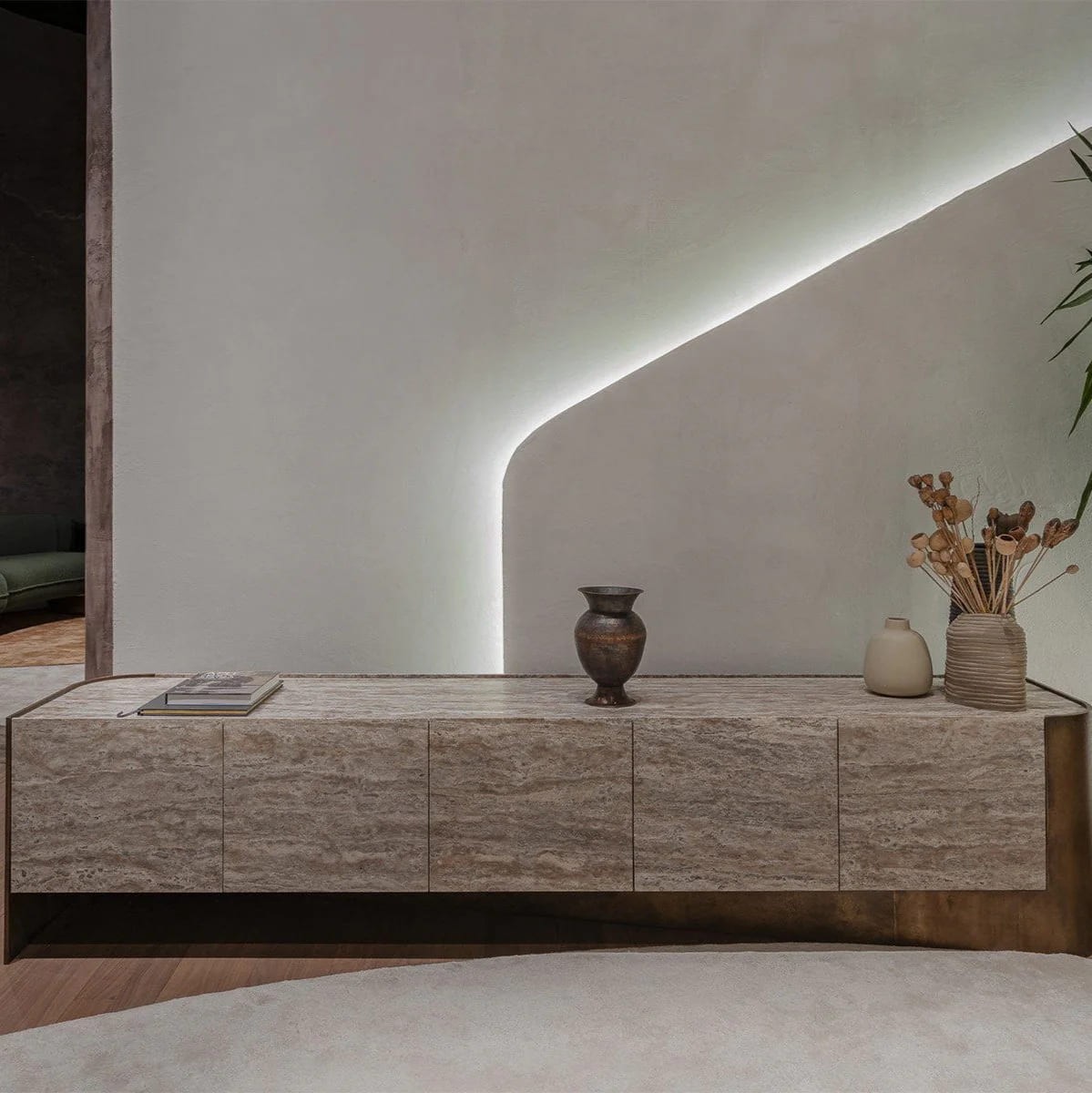 وحدة تلفاز فاخرة بتصميم عصري يجمع بين الرقي والعملية. مصنوعة من مزيج أنيق من المعدن الكهروستاتيكي والرخام الفاخر، ما يمنحها متانة استثنائية ومظهرًا جذابًا يعكس الذوق الرفيع. توفر مساحة واسعة لترتيب الأجهزة الإلكترونية والإكسسوارات والديكور، مع تصميم انسيابي يضفي لمسة تنظيمية أنيقة على المساحة.