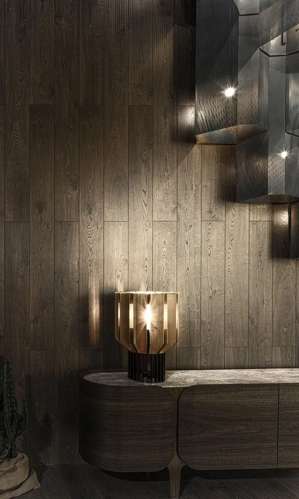 مزيج من الخشب الطبيعي، المعدن، والرخام