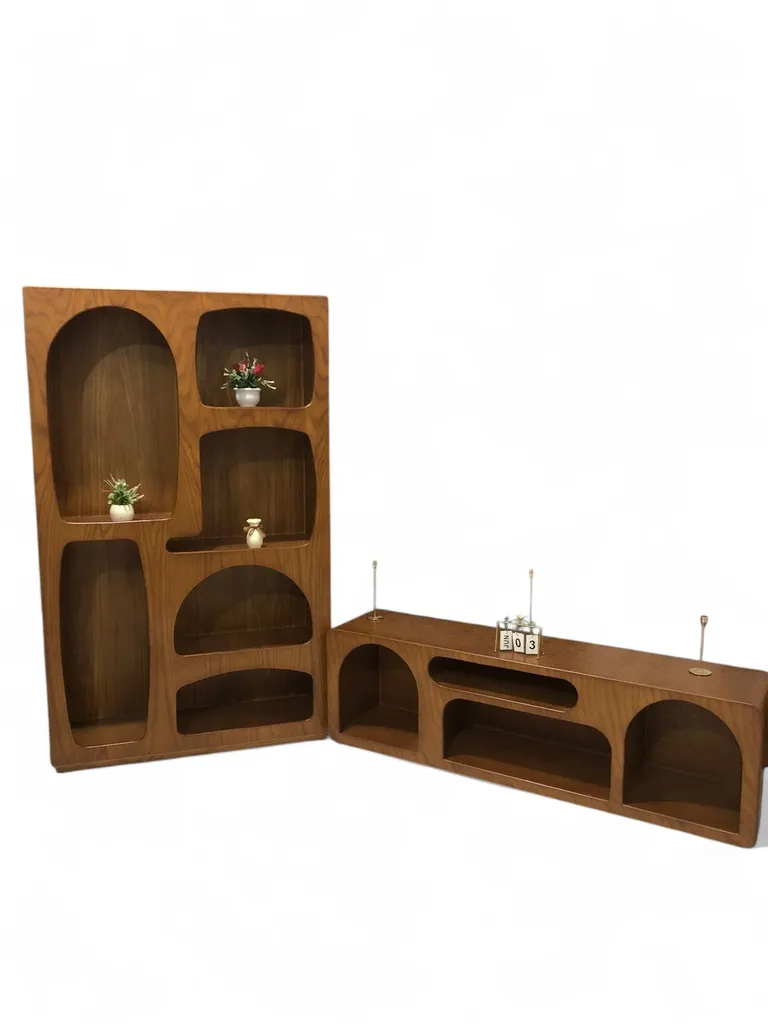الرفوف: مزوّدة بعدة رفوف مفتوحة بتصميمات مستطيلة ومنحنية لتمنحك مرونة في تنظيم الكتب، الإكسسوارات أو عناصر الزينة.