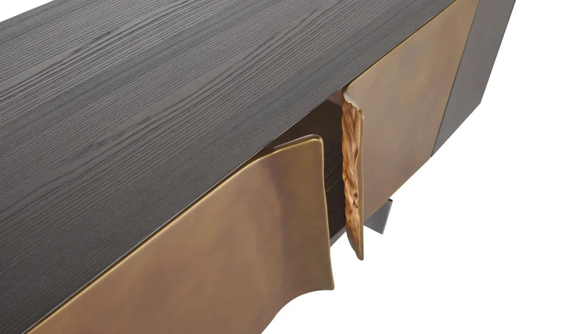 وحدة تلفاز عصرية فاخرة – تصميم أنيق بلون أسود ولمسات ذهبية غير لامعة
