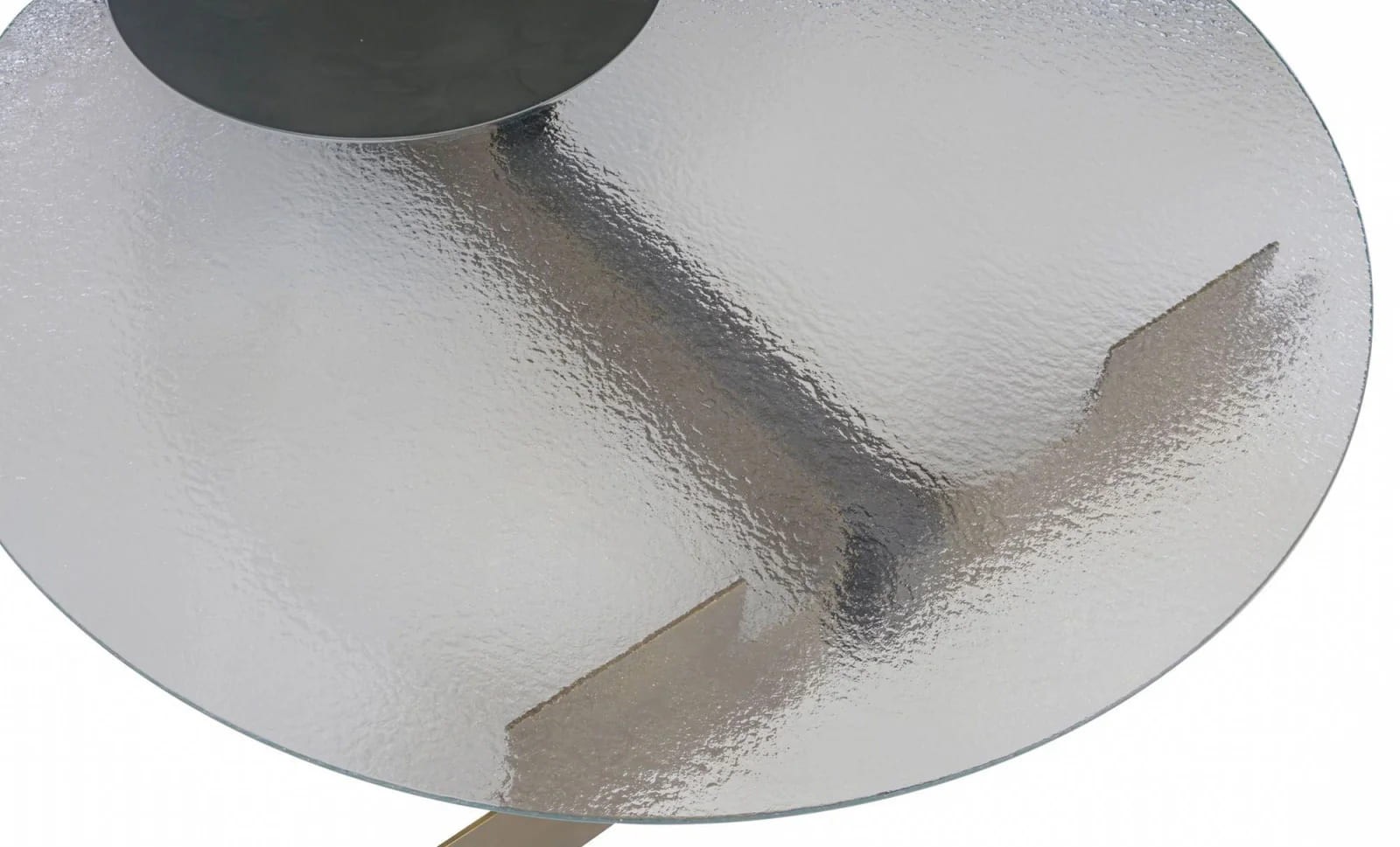 ترابيزة قهوة دائرية بسطح زجاجي محفور وقاعدة معدنية – تصميم عصري فاخر