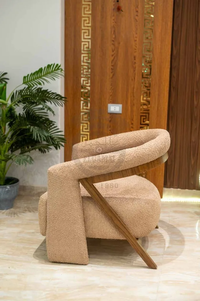كرسيين مريحين مزودين بمساند خشبية جانبية بتصميم هندسي عصري، مع وسائد داعمة لمزيد من الراحة.