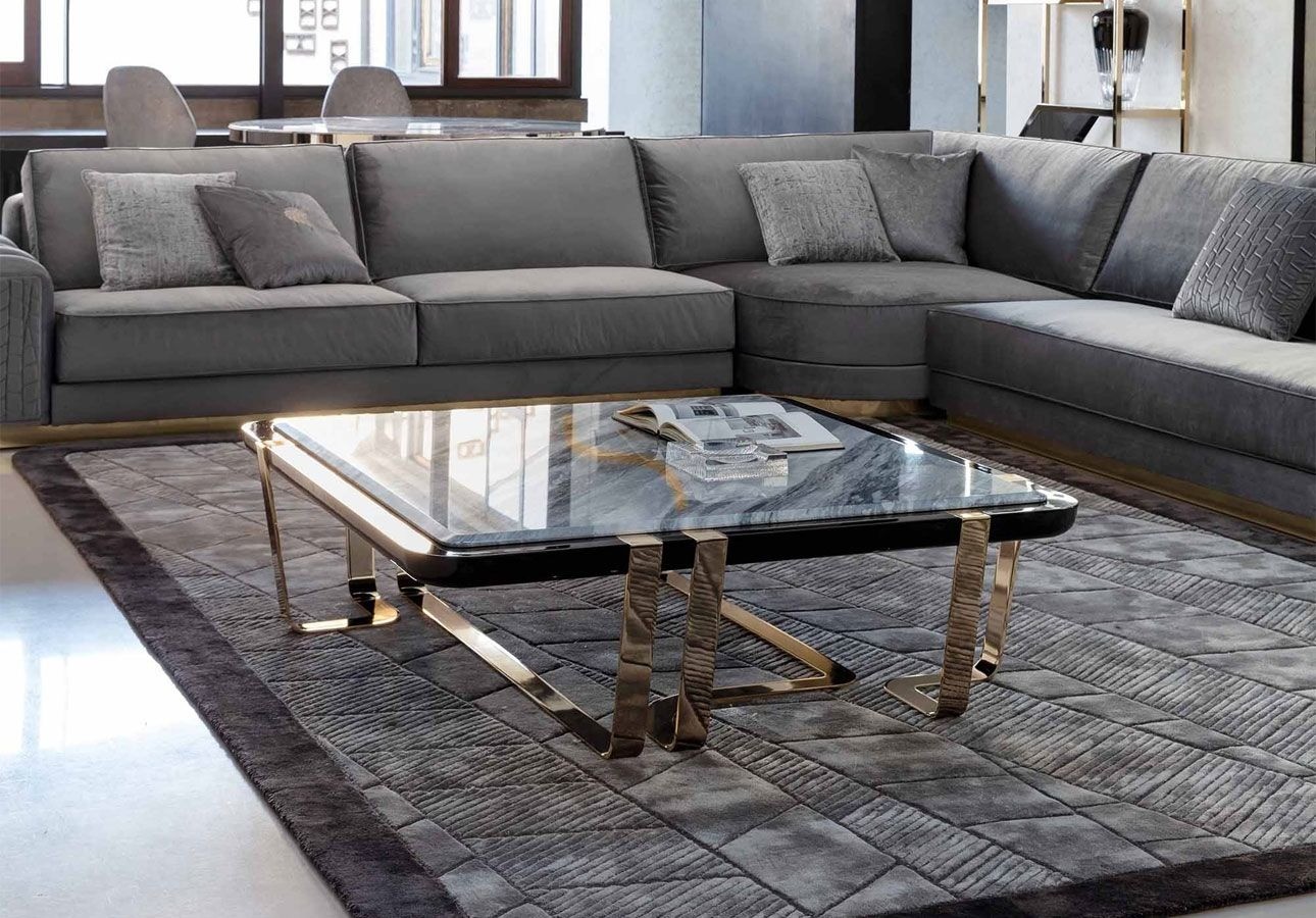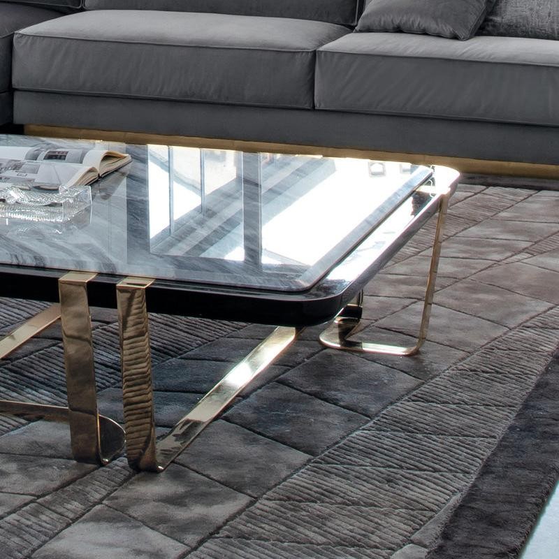 ترابيزة قهوة مربعة فاخرة بسطح زجاجي وإطار معدني متين