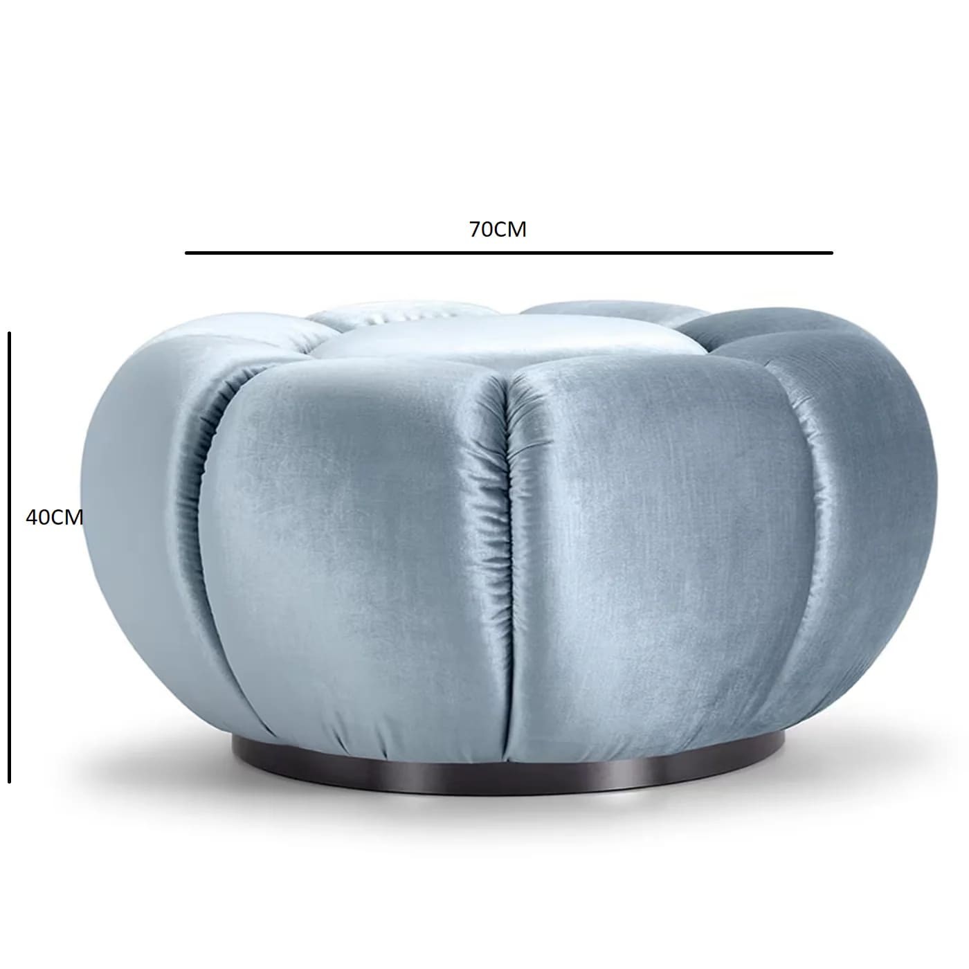 مقعد بتصميم فريد يجمع بين الفخامة والراحة، مصنوع من خشب طبيعي وقماش عالي الجودة، ومُزين بلمسات من الفولاذ المقاوم للصدأ ليمزج بين المتانة والأناقة. لونه الأزرق السماوي المميز يضفي سحرًا منعشًا وجاذبية خاصة على أي مساحة داخلية، مما يجعله مثاليًا لغرف المعيشة أو الصالات.
