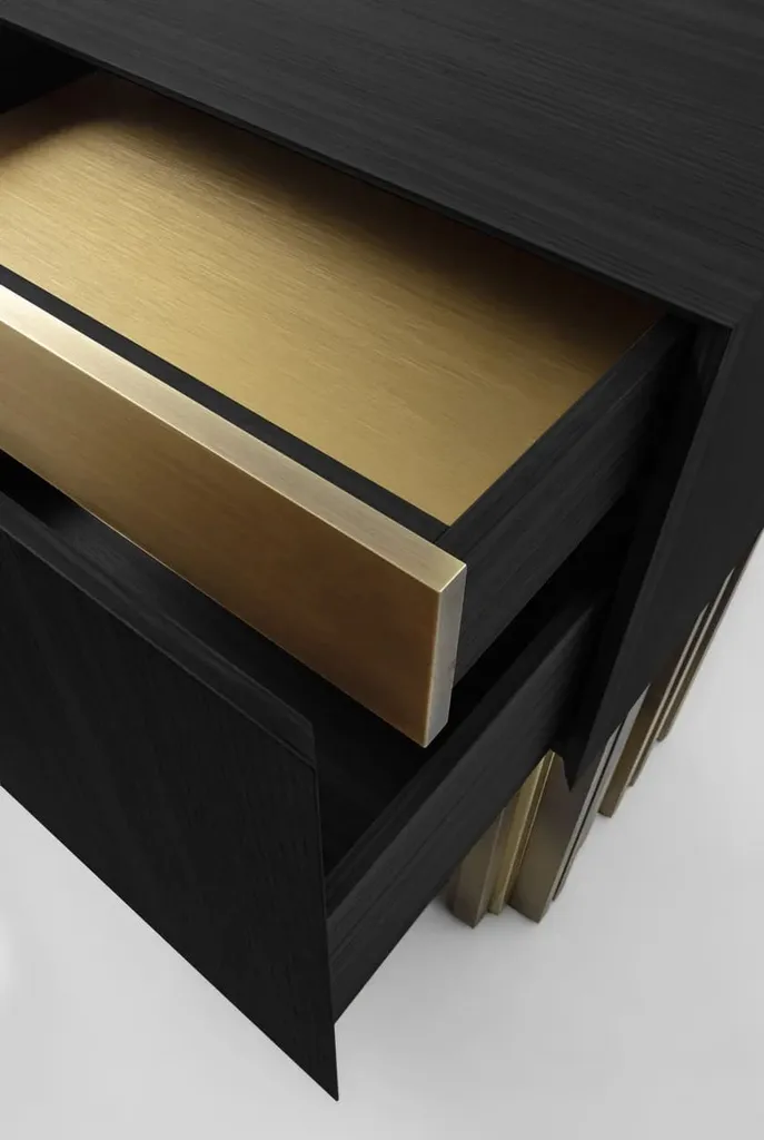 إطار معدني ذهبي مع طلاء أسود فاخر وتفاصيل ذهبية.