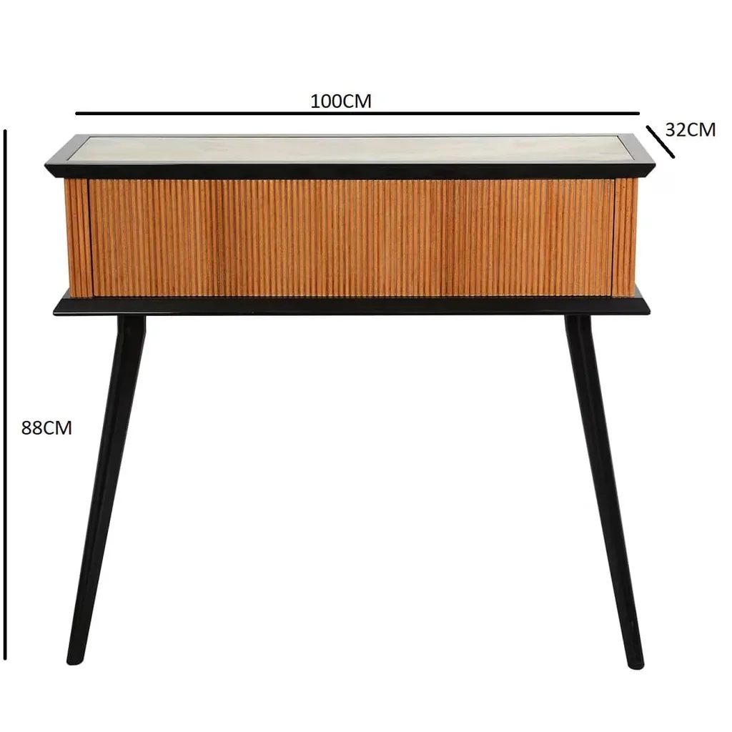 أضف لمسة من الرقي إلى منزلك مع هذا الكونسول المميز، المصمم بحواف مشطوفة أنيقة وتفاصيل فاخرة تُبرز جاذبيته وتعدد استخداماته. يجمع بين الخشب الطبيعي والرخام والفولاذ المقاوم للصدأ ليمنحك مزيجًا من المتانة والجمال. ألوانه المميزة من البيج والبني والأسود تضفي مظهرًا متوازنًا وراقيًا ينسجم مع مختلف أنماط الديكور، سواء في الممرات أو غرف المعيشة أو المكاتب.
