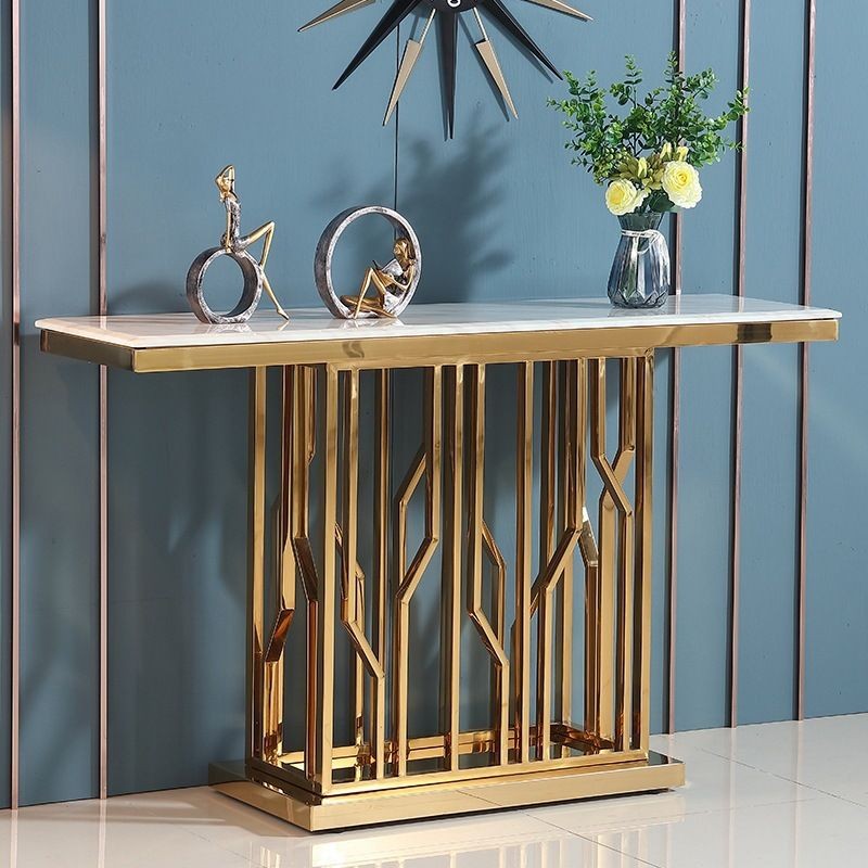 استمتع بالأناقة والعملية مع هذا الكونسول العصري المصنوع من الخشب الطبيعي والمعدن لضمان المتانة والفخامة. يتميز بتصميم فاخر يجمع بين اللون الأسود الجذاب واللمسات الذهبية الراقية، مما يجعله قطعة مثالية لإضفاء لمسة من الرقي على أي مساحة.