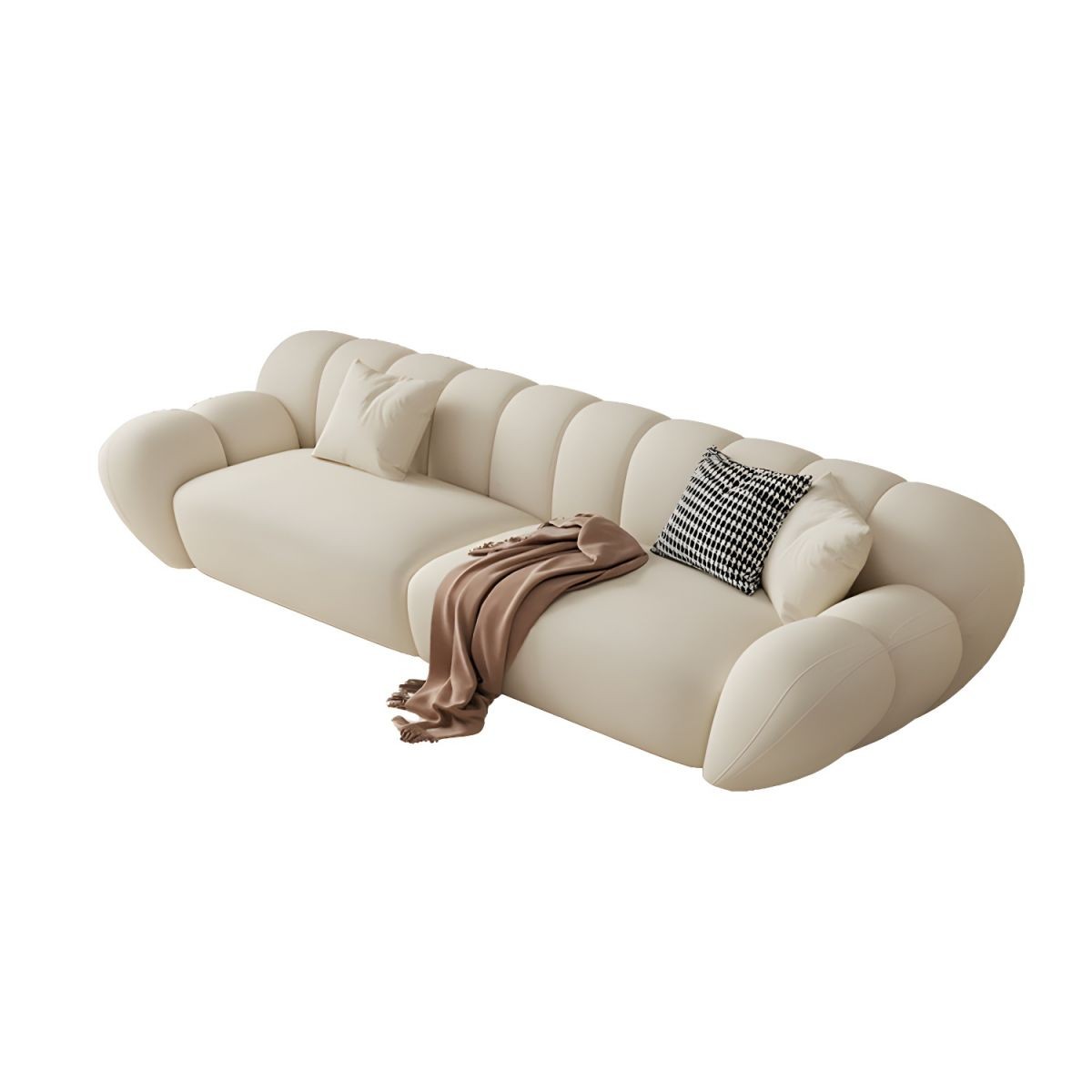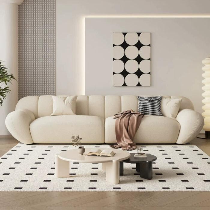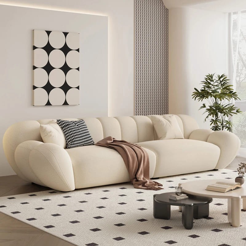 كنبة عصرية بتصميم فريد باللون الأبيض تجمع بين الأناقة والراحة لتكون خيارًا مثاليًا للديكورات الداخلية الحديثة.