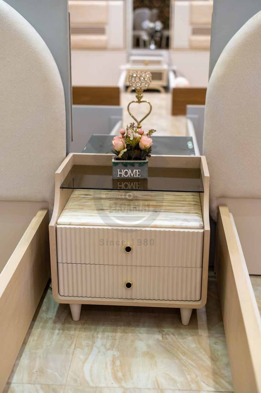 تميّز بلمسة عصرية مع غرفة نوم شباب وأطفال مودرن تجمع بين البساطة والعملية في آنٍ واحد. الغرفة تضم سريرين منفصلين بظهر مبطن ناعم يمنح راحة وأناقة، مع كومود جانبي بتصميم عصري يوفر مساحة عملية للتخزين والاستخدام اليومي.
