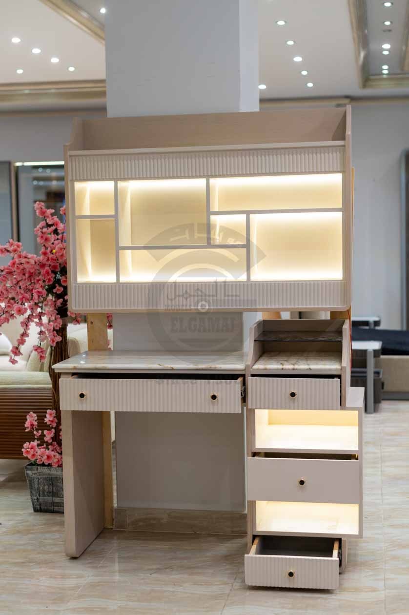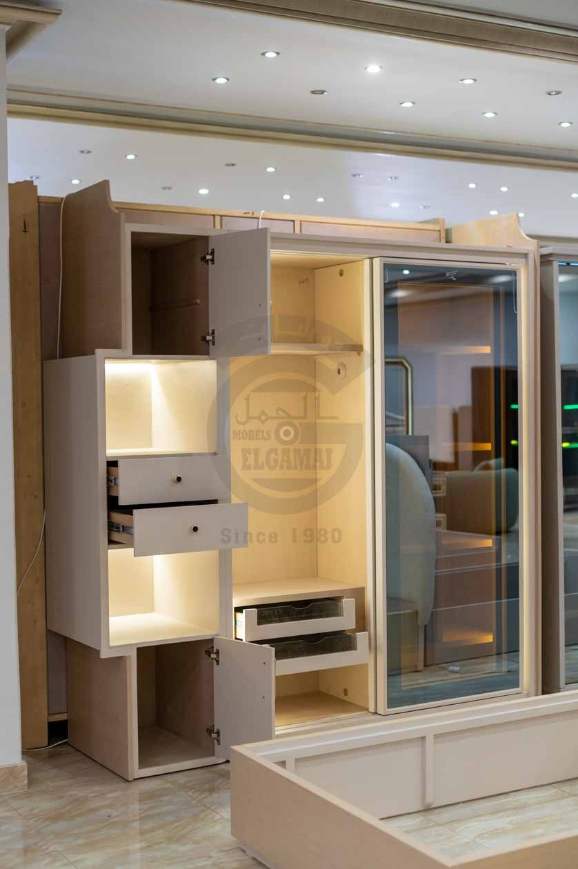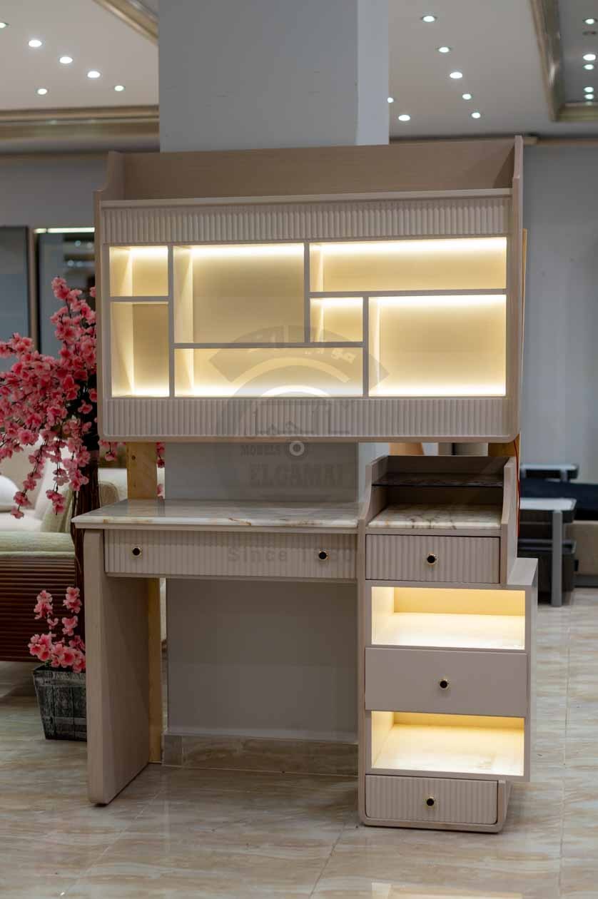 ✅ دولاب جرار زجاجي بإضاءة داخلية دولاب بيتقسم الدرفة الشمال جزء لوحده و معاها مكتب بمكتبة بالقورص الرخام
