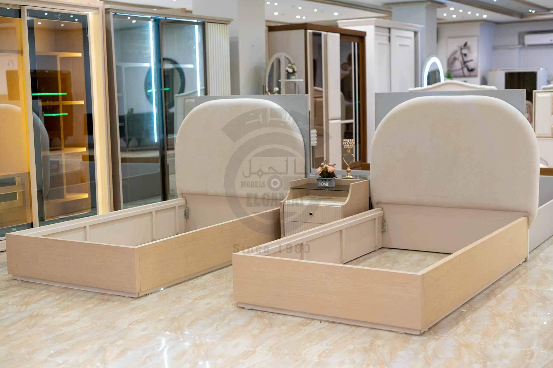 ✅ سريرين منفصلين بظهر مبطن أنيق