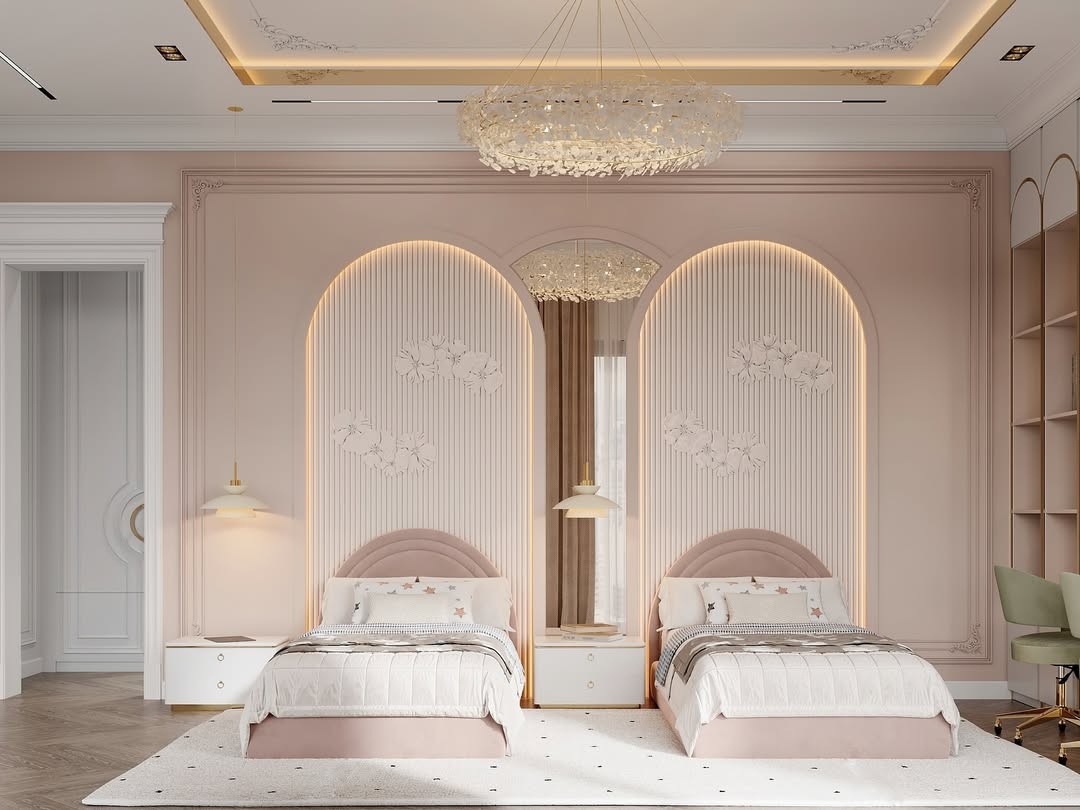 الألوان الفاتحة واللمسات الدافئة تجعل الغرفة مثالية للشباب والأطفال، وتتناسب مع مختلف أنماط الديكور العصري، مما يجعلها خياراً مثالياً يجمع بين الراحة، الأناقة، والعملية.