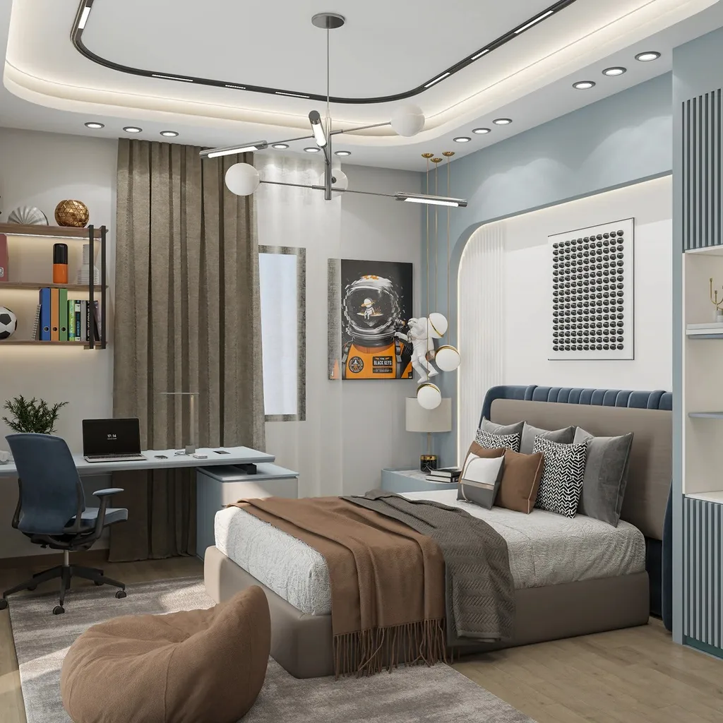 سرير مودرن بتصميم يعكس الطابع المرح والمعاصر، مثالي لغرف الشباب والأطفال.