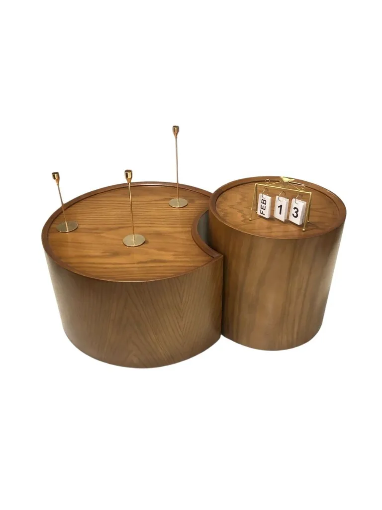 طقم ترابيزات قهوة دائري خشبي مكون من قطعتين