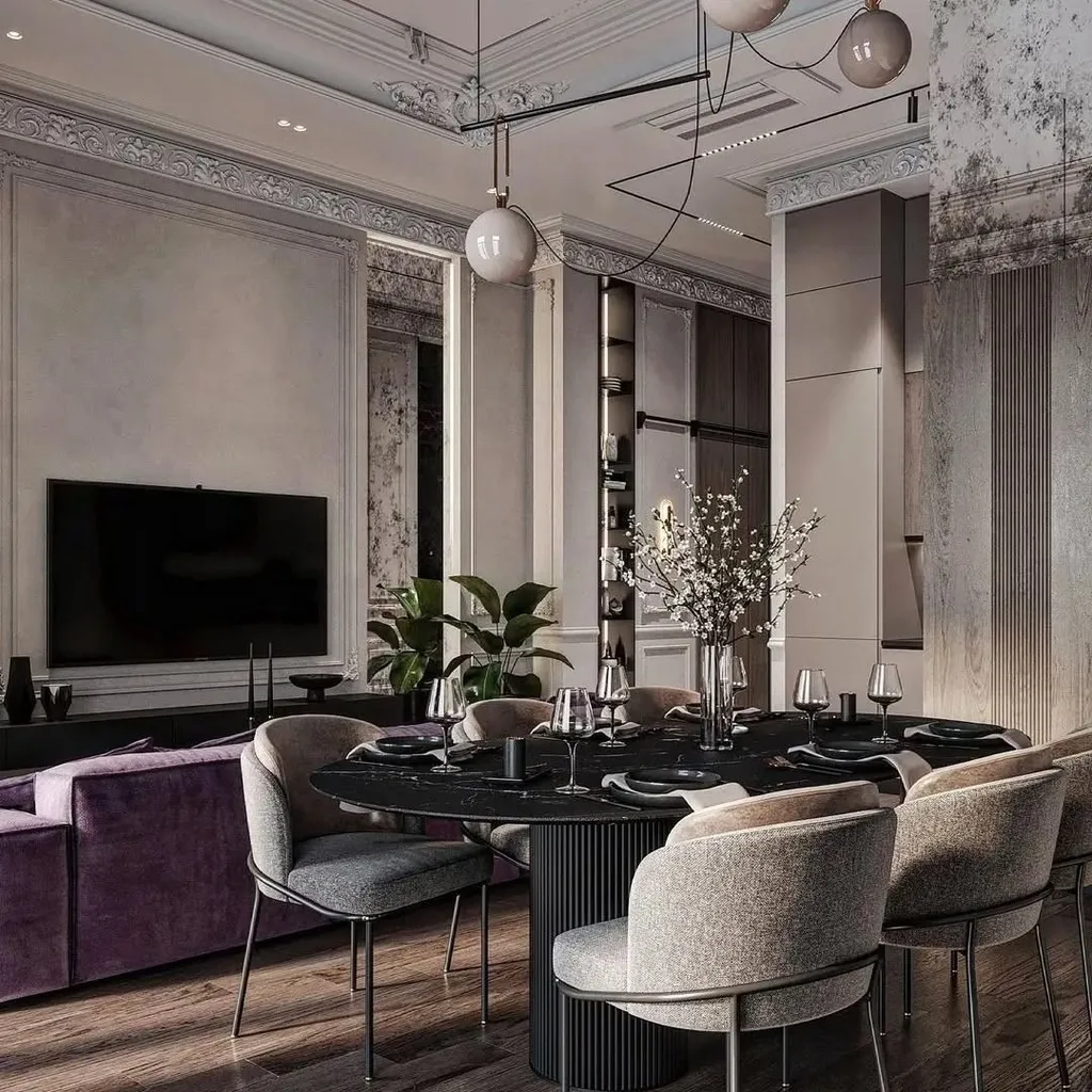 غرفة طعام صغيرة بتصميم أنيق وعصري.