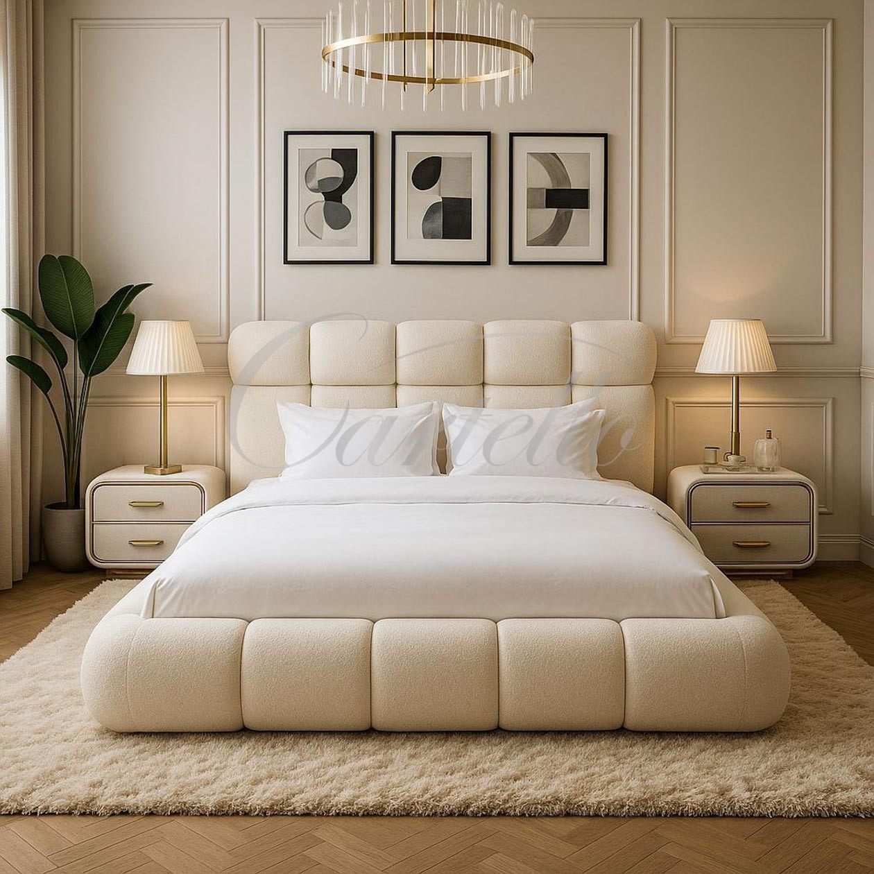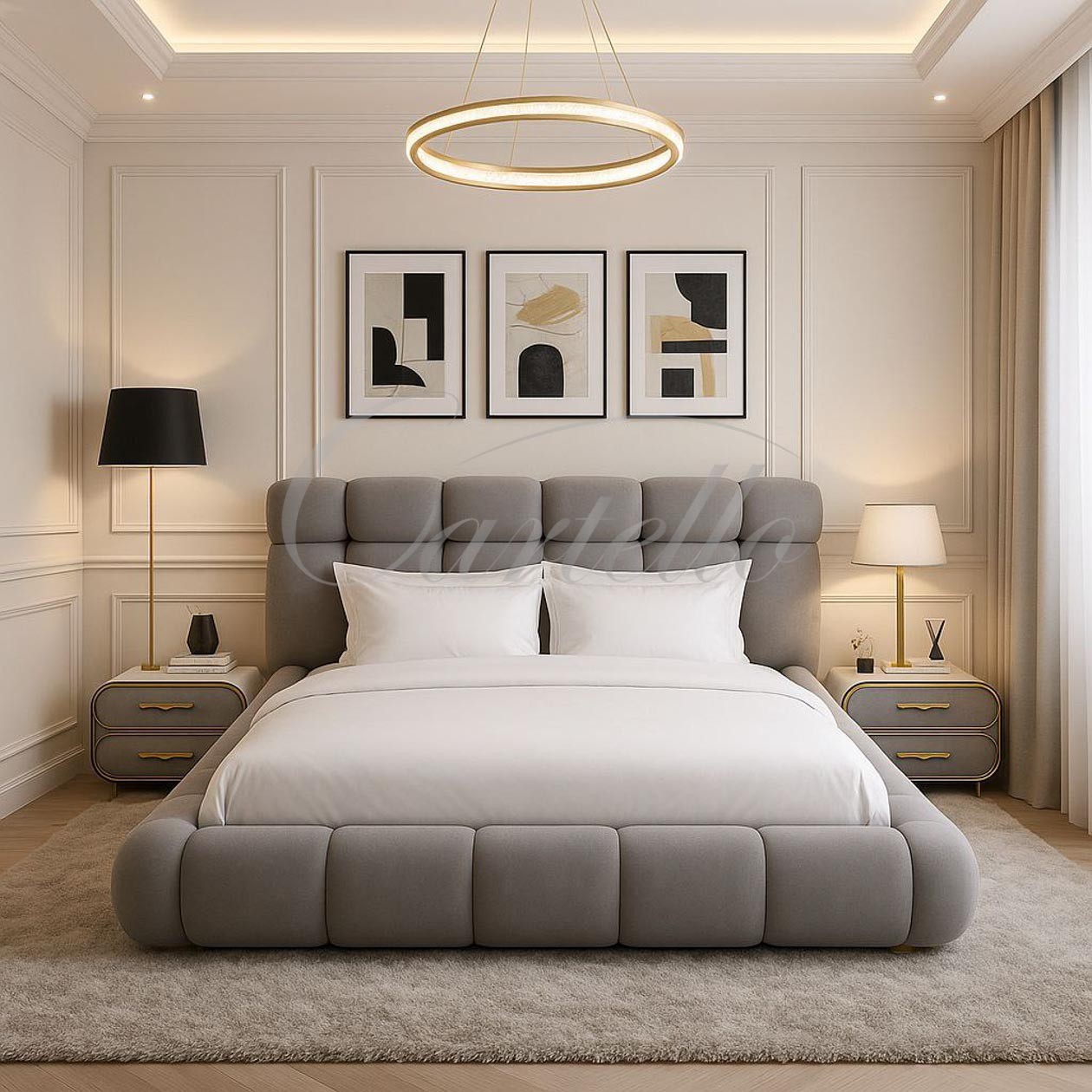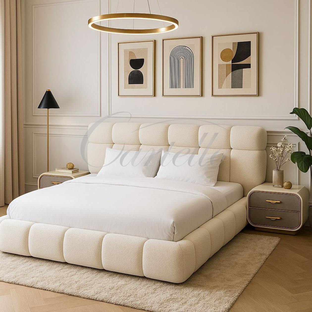 ارتقي بغرفة نومك مع سرير بابلز مودرن يجمع بين الفخامة والراحة في تصميم عصري راقي. السرير مصنوع من أجود أنواع الأخشاب لضمان المتانة وطول العمر، ومبطّن بقماش بوكليه فاخر يضفي لمسة ناعمة وفخمة لمساحتك. تصميم السرير العصري يضمن الراحة والجمال في نفس الوقت.