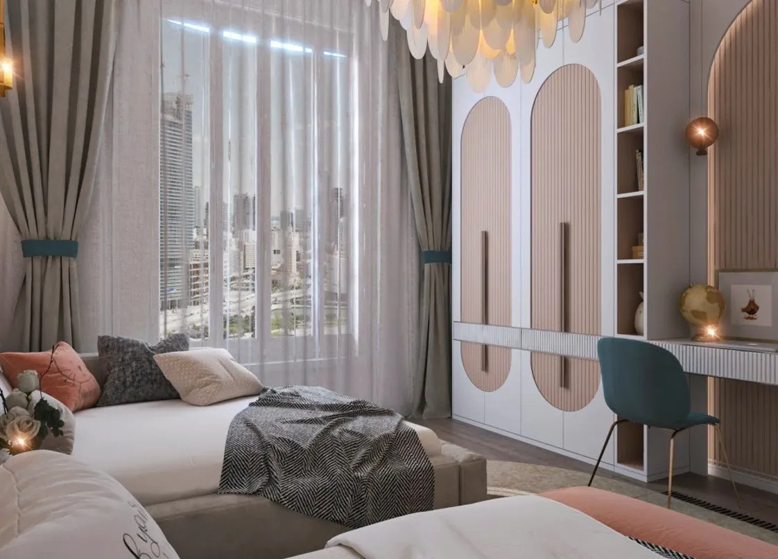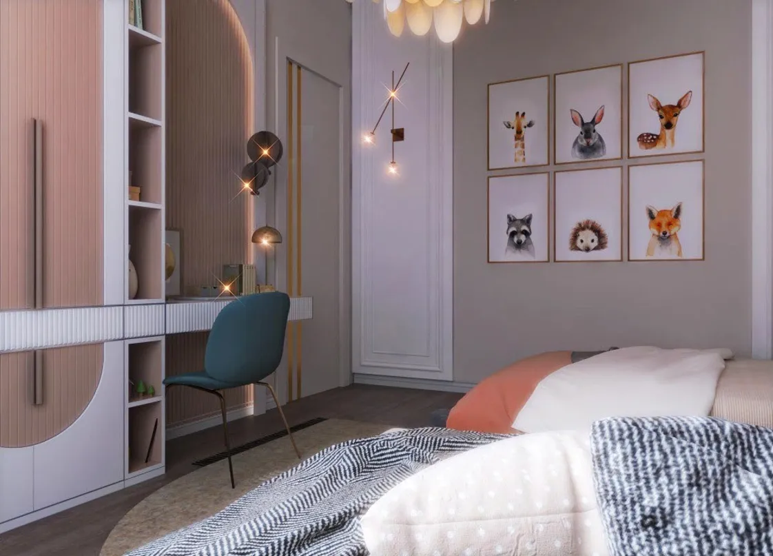 غرفة نوم شباب وأطفال بتصميم عصري متوازن يجمع بين الأناقة والوظيفة.