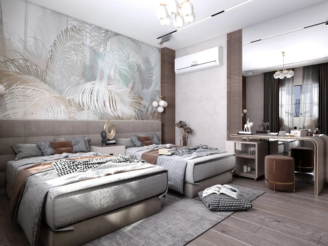 غرفة نوم شباب وأطفال بتصميم عصري تتميز بالبساطة والتنظيم: